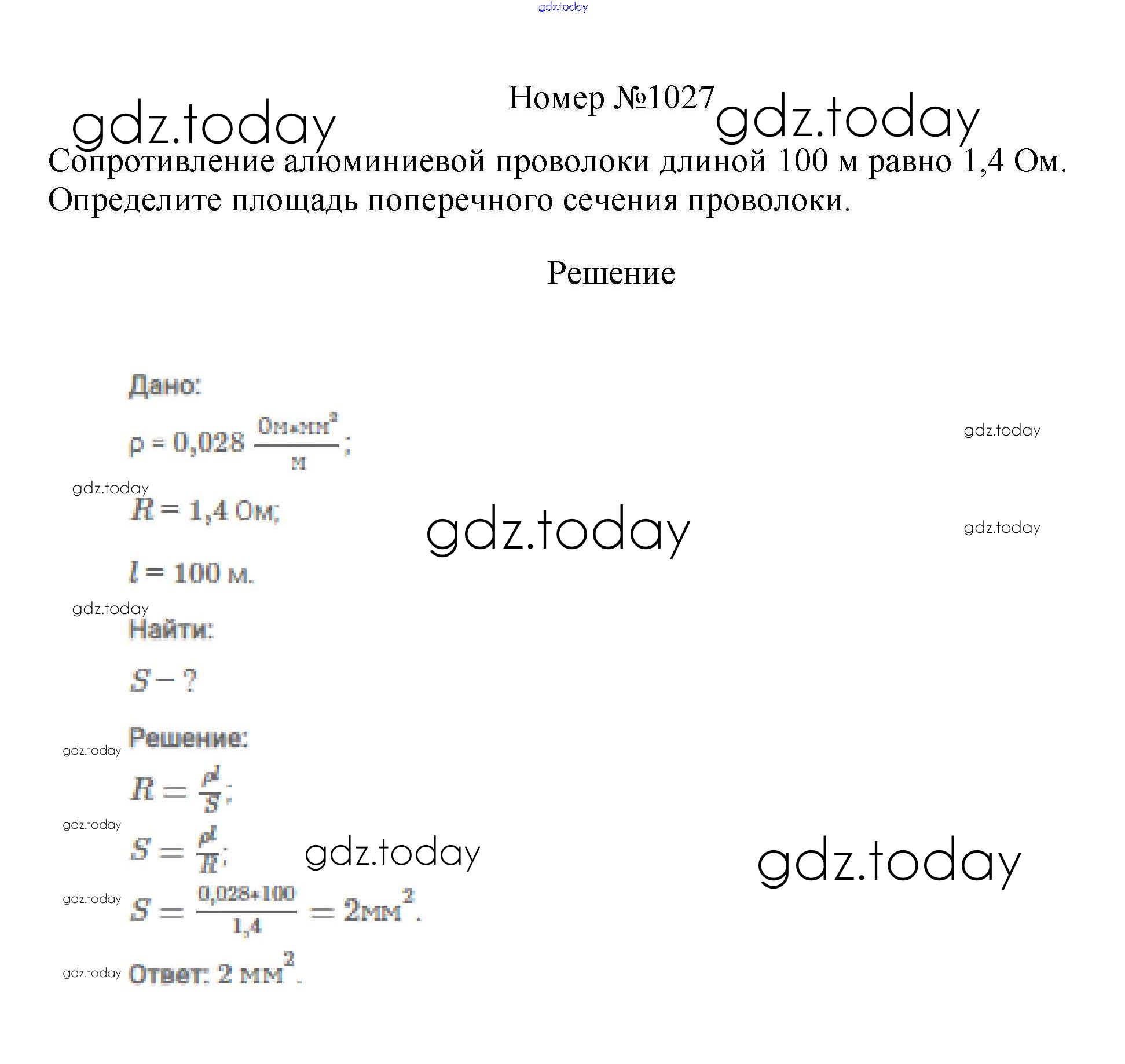 На страницах сайта gdz.today вы найдете учебный и вспомогательный материал, направленный на улучшения знаний школьной программы. ГДЗ - онлайн мир знаний Решение к заданиям 8 класс 1027 Сборнику вопросов и задач по Физике для 7-9 класса Марон, Позойский Дрофа Вертикаль 2013