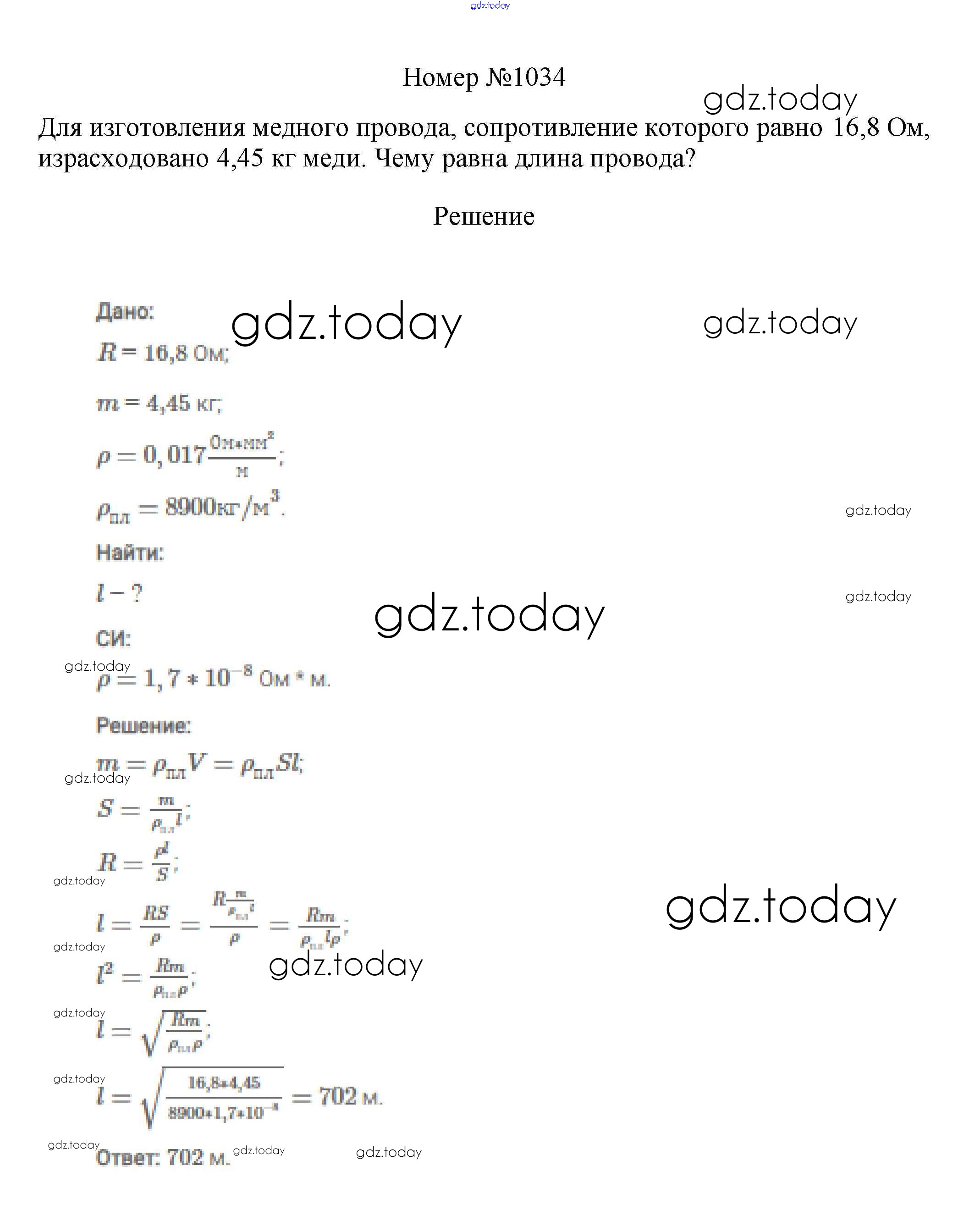 На страницах сайта gdz.today вы найдете учебный и вспомогательный материал, направленный на улучшения знаний школьной программы. ГДЗ - онлайн мир знаний Решение к заданиям 8 класс 1034 Сборнику вопросов и задач по Физике для 7-9 класса Марон, Позойский Дрофа Вертикаль 2013