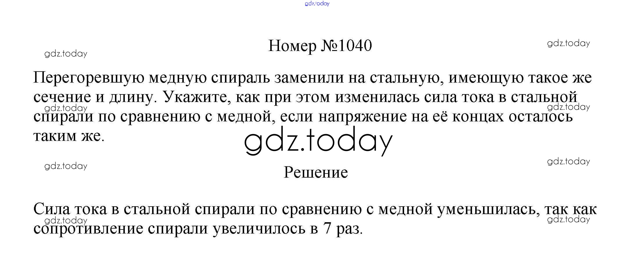 На страницах сайта gdz.today вы найдете учебный и вспомогательный материал, направленный на улучшения знаний школьной программы. ГДЗ - онлайн мир знаний Решение к заданиям 8 класс 1040 Сборнику вопросов и задач по Физике для 7-9 класса Марон, Позойский Дрофа Вертикаль 2013