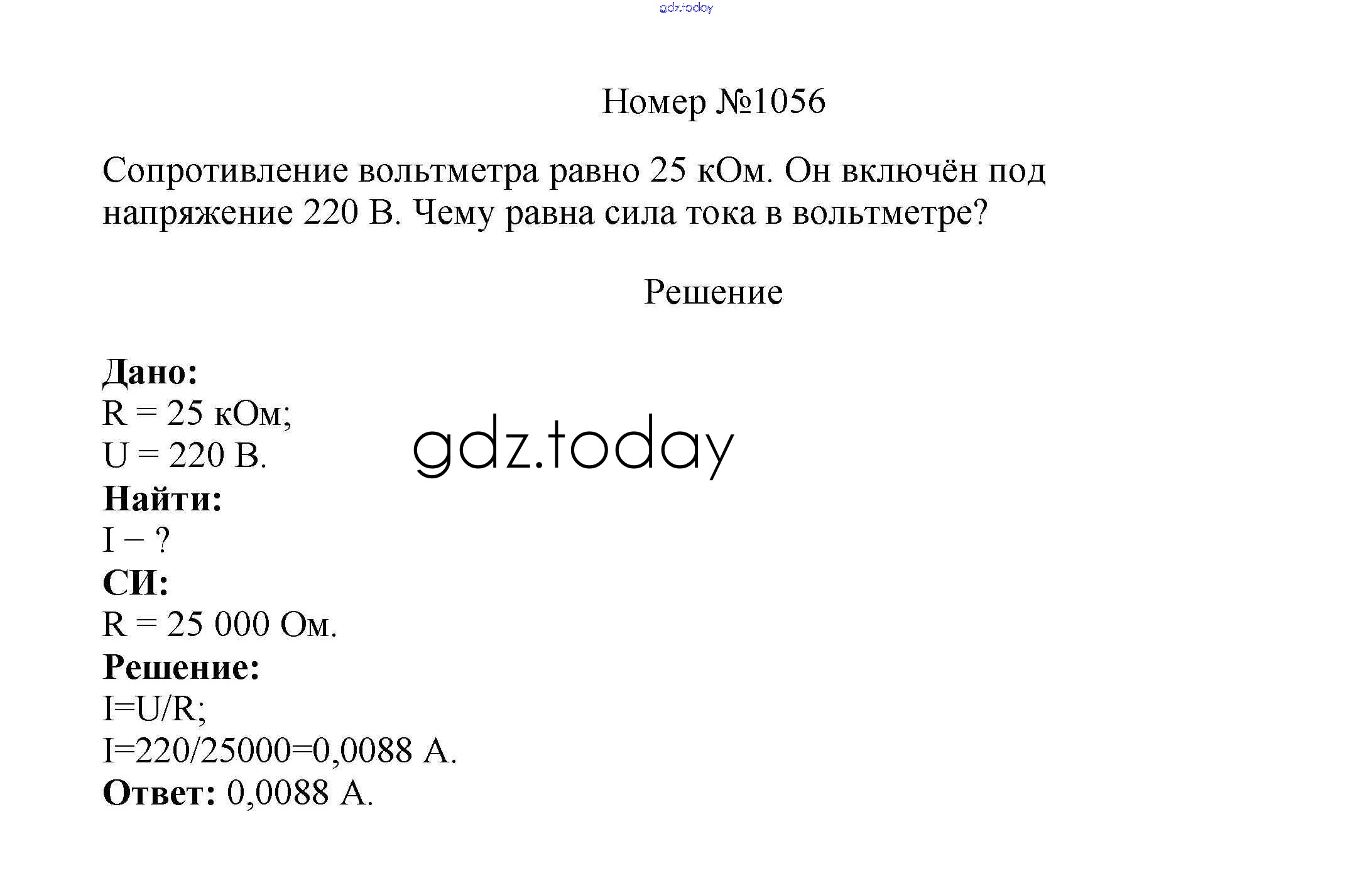 На страницах сайта gdz.today вы найдете учебный и вспомогательный материал, направленный на улучшения знаний школьной программы. ГДЗ - онлайн мир знаний Решение к заданиям 8 класс 1056 Сборнику вопросов и задач по Физике для 7-9 класса Марон, Позойский Дрофа Вертикаль 2013