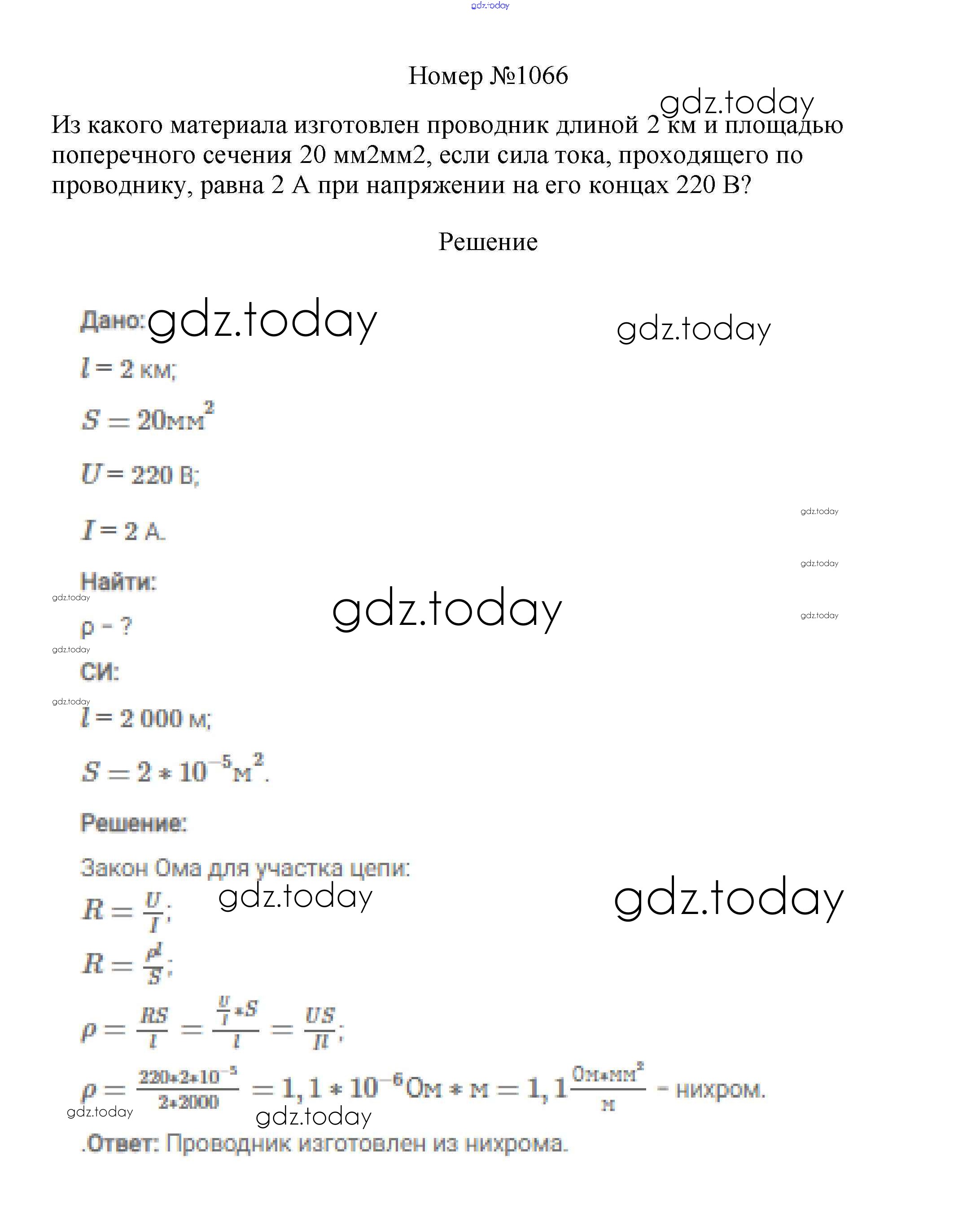 На страницах сайта gdz.today вы найдете учебный и вспомогательный материал, направленный на улучшения знаний школьной программы. ГДЗ - онлайн мир знаний Решение к заданиям 8 класс 1066 Сборнику вопросов и задач по Физике для 7-9 класса Марон, Позойский Дрофа Вертикаль 2013