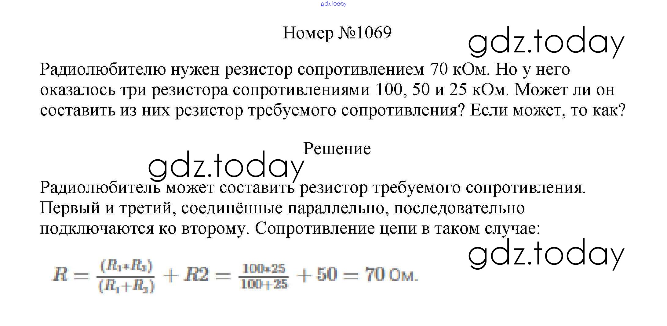 На страницах сайта gdz.today вы найдете учебный и вспомогательный материал, направленный на улучшения знаний школьной программы. ГДЗ - онлайн мир знаний Решение к заданиям 8 класс 1069 Сборнику вопросов и задач по Физике для 7-9 класса Марон, Позойский Дрофа Вертикаль 2013