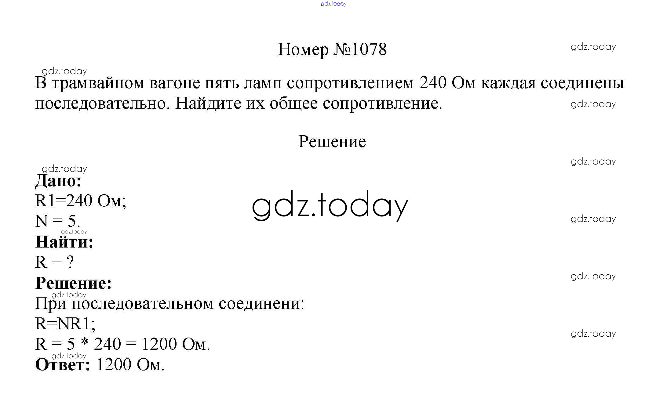 На страницах сайта gdz.today вы найдете учебный и вспомогательный материал, направленный на улучшения знаний школьной программы. ГДЗ - онлайн мир знаний Решение к заданиям 8 класс 1078 Сборнику вопросов и задач по Физике для 7-9 класса Марон, Позойский Дрофа Вертикаль 2013