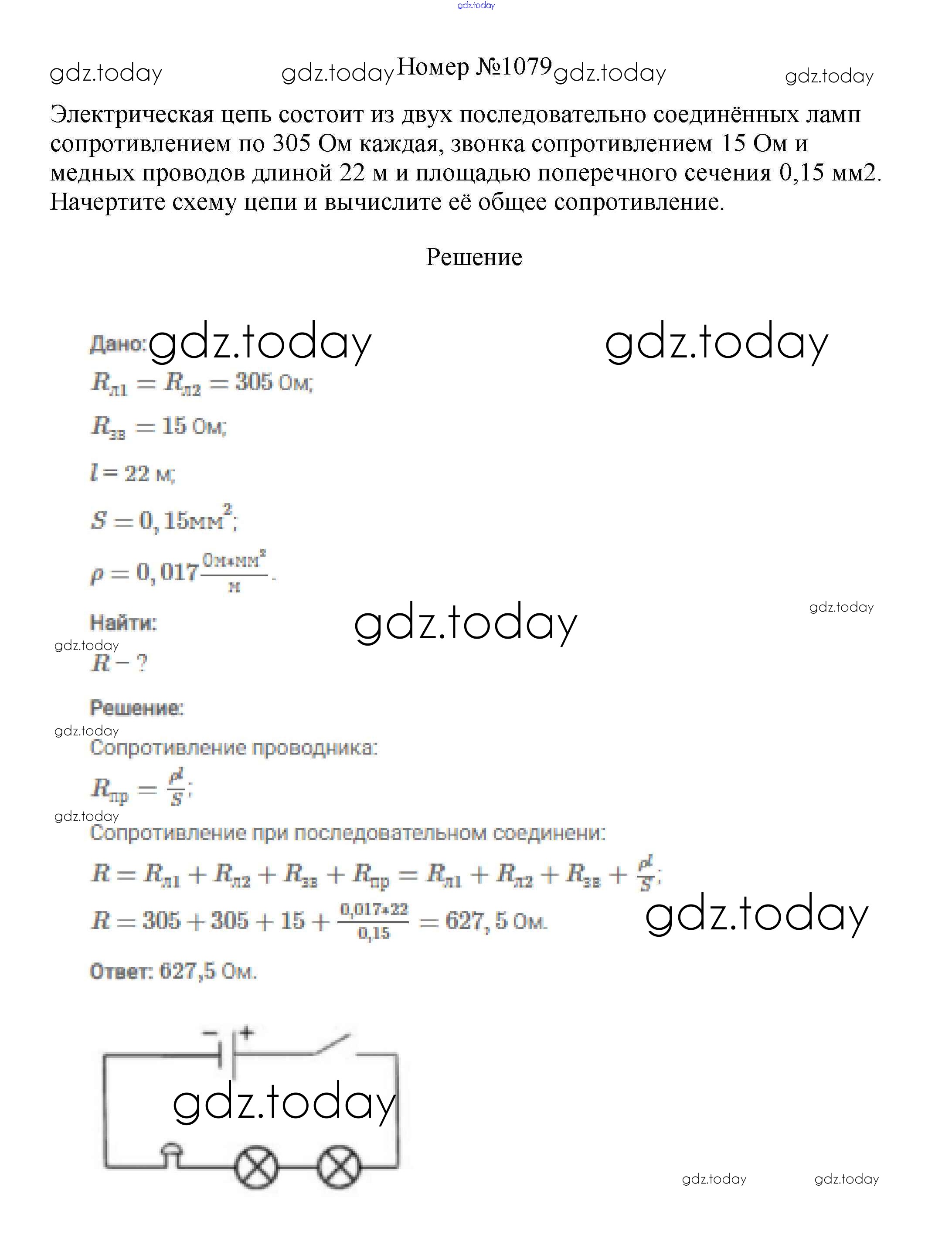 На страницах сайта gdz.today вы найдете учебный и вспомогательный материал, направленный на улучшения знаний школьной программы. ГДЗ - онлайн мир знаний Решение к заданиям 8 класс 1079 Сборнику вопросов и задач по Физике для 7-9 класса Марон, Позойский Дрофа Вертикаль 2013