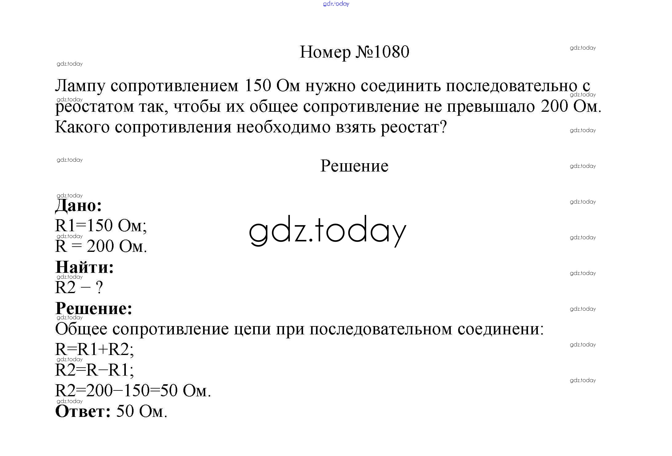 На страницах сайта gdz.today вы найдете учебный и вспомогательный материал, направленный на улучшения знаний школьной программы. ГДЗ - онлайн мир знаний Решение к заданиям 8 класс 1080 Сборнику вопросов и задач по Физике для 7-9 класса Марон, Позойский Дрофа Вертикаль 2013