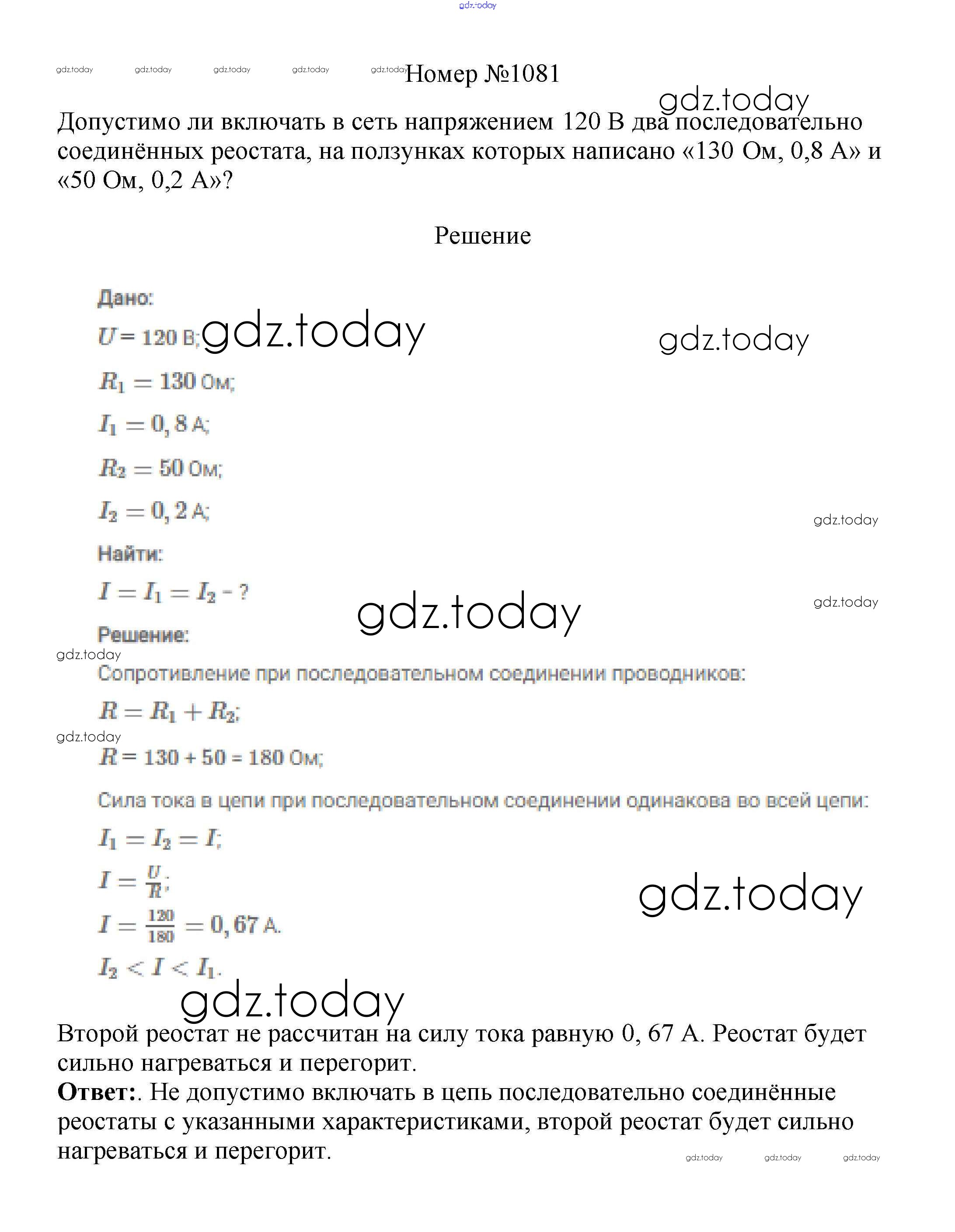 На страницах сайта gdz.today вы найдете учебный и вспомогательный материал, направленный на улучшения знаний школьной программы. ГДЗ - онлайн мир знаний Решение к заданиям 8 класс 1081 Сборнику вопросов и задач по Физике для 7-9 класса Марон, Позойский Дрофа Вертикаль 2013