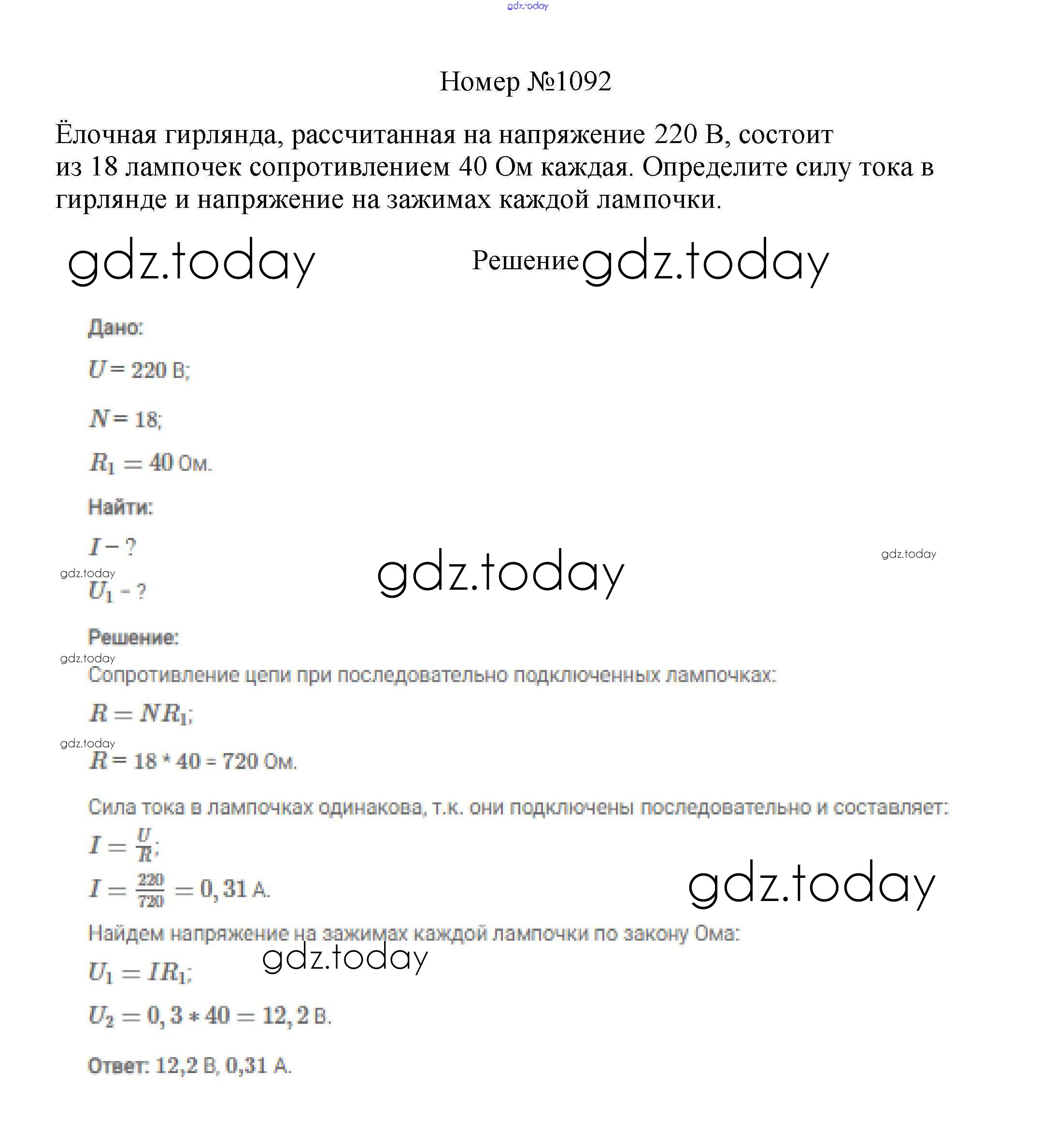 На страницах сайта gdz.today вы найдете учебный и вспомогательный материал, направленный на улучшения знаний школьной программы. ГДЗ - онлайн мир знаний Решение к заданиям 8 класс 1092 Сборнику вопросов и задач по Физике для 7-9 класса Марон, Позойский Дрофа Вертикаль 2013