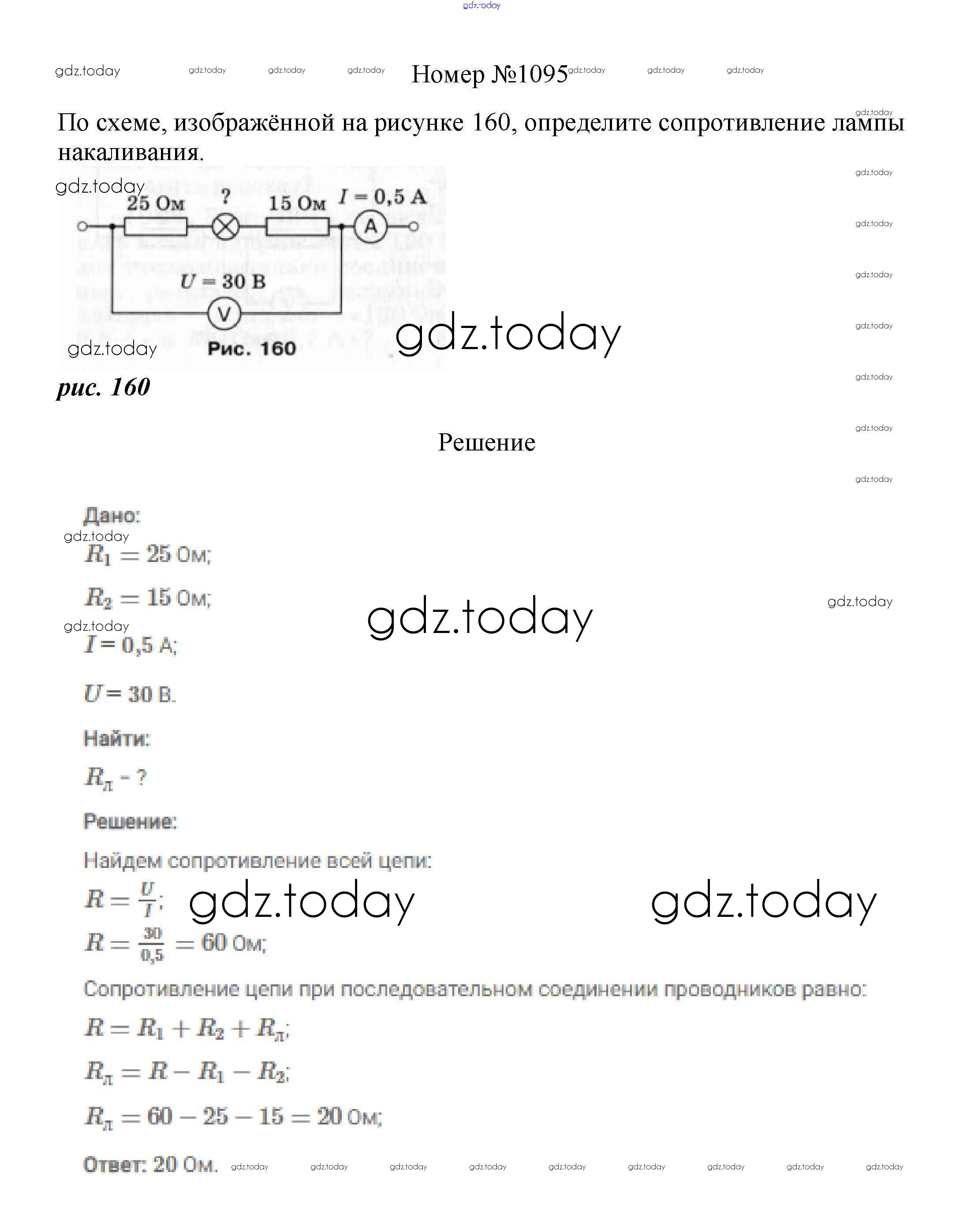 На страницах сайта gdz.today вы найдете учебный и вспомогательный материал, направленный на улучшения знаний школьной программы. ГДЗ - онлайн мир знаний Решение к заданиям 8 класс 1095 Сборнику вопросов и задач по Физике для 7-9 класса Марон, Позойский Дрофа Вертикаль 2013