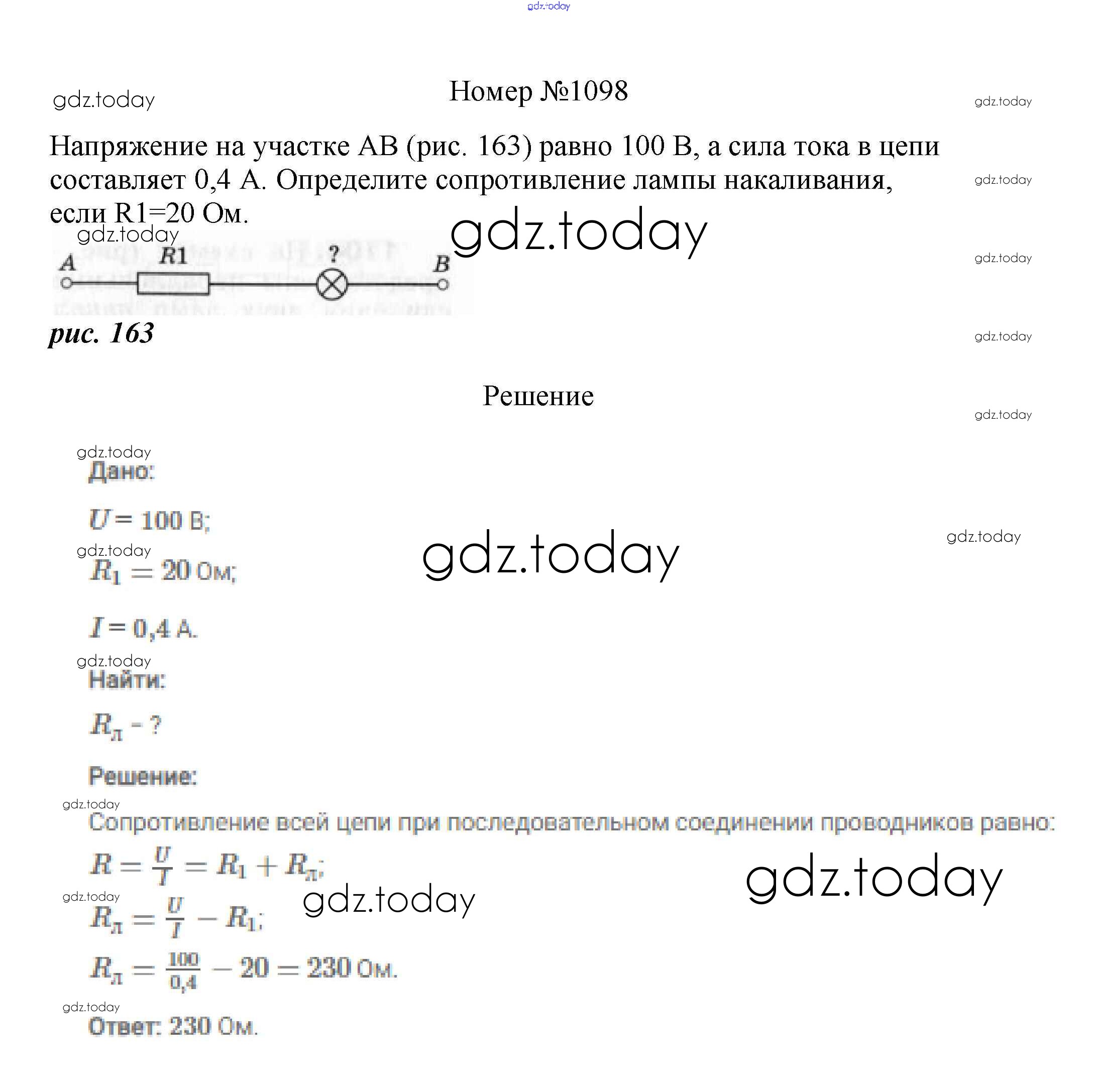 На страницах сайта gdz.today вы найдете учебный и вспомогательный материал, направленный на улучшения знаний школьной программы. ГДЗ - онлайн мир знаний Решение к заданиям 8 класс 1098 Сборнику вопросов и задач по Физике для 7-9 класса Марон, Позойский Дрофа Вертикаль 2013