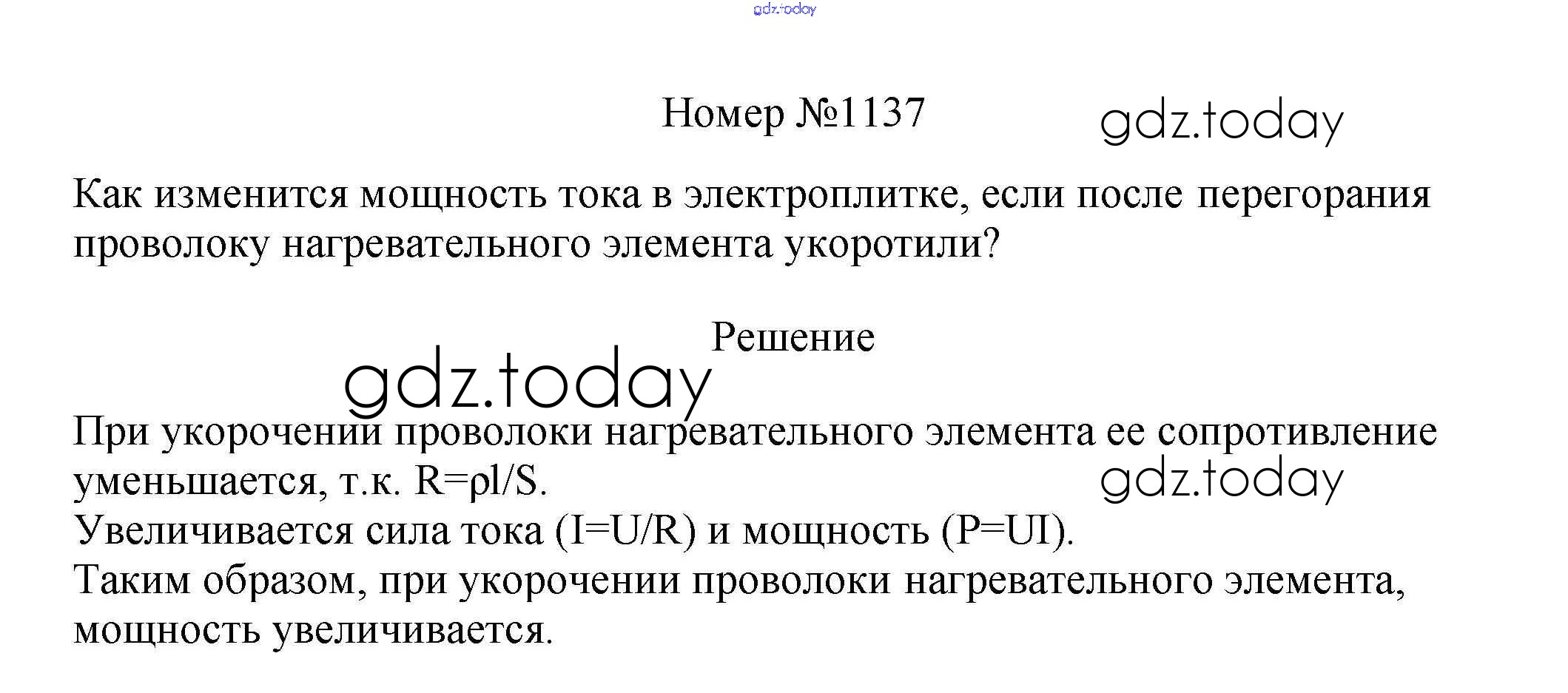 На страницах сайта gdz.today вы найдете учебный и вспомогательный материал, направленный на улучшения знаний школьной программы. ГДЗ - онлайн мир знаний Решение к заданиям 8 класс 1137 Сборнику вопросов и задач по Физике для 7-9 класса Марон, Позойский Дрофа Вертикаль 2013