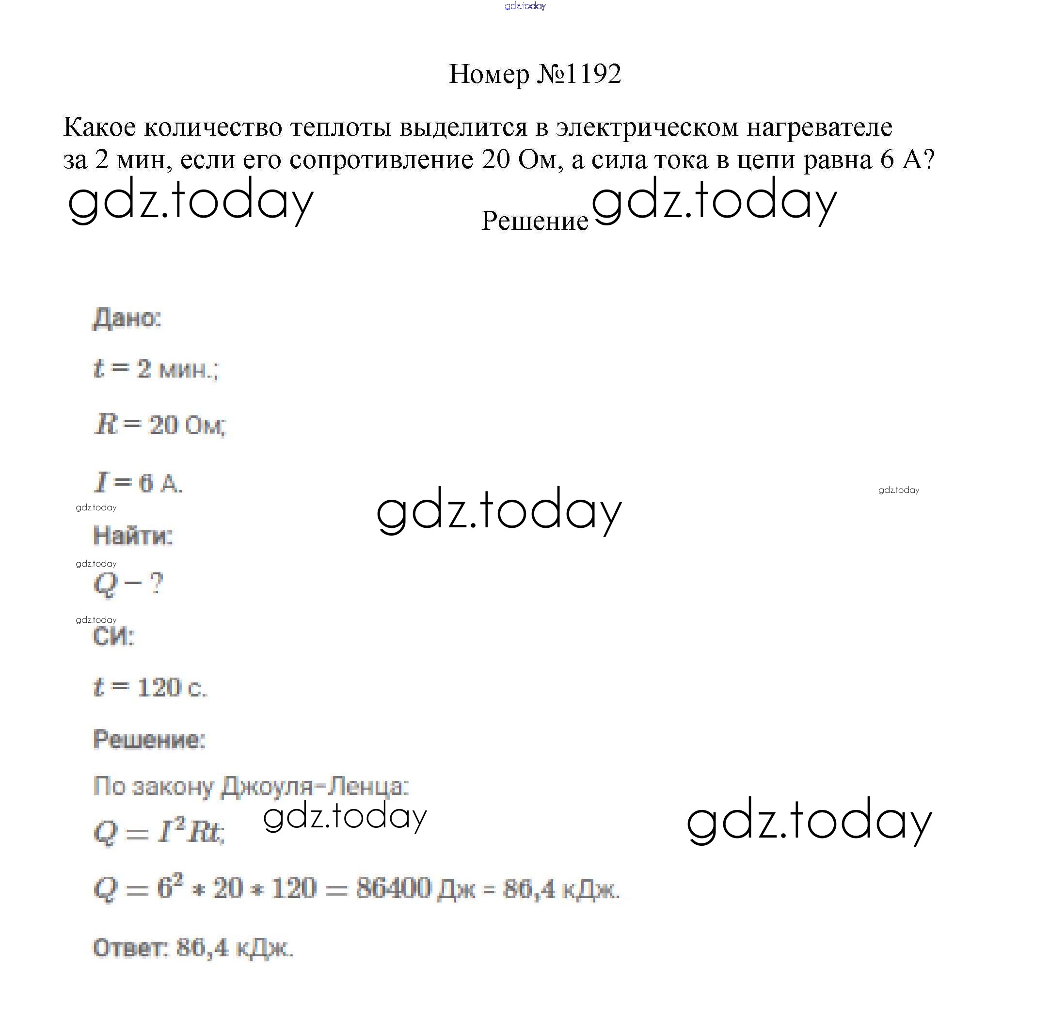 На страницах сайта gdz.today вы найдете учебный и вспомогательный материал, направленный на улучшения знаний школьной программы. ГДЗ - онлайн мир знаний Решение к заданиям 8 класс 1192 Сборнику вопросов и задач по Физике для 7-9 класса Марон, Позойский Дрофа Вертикаль 2013