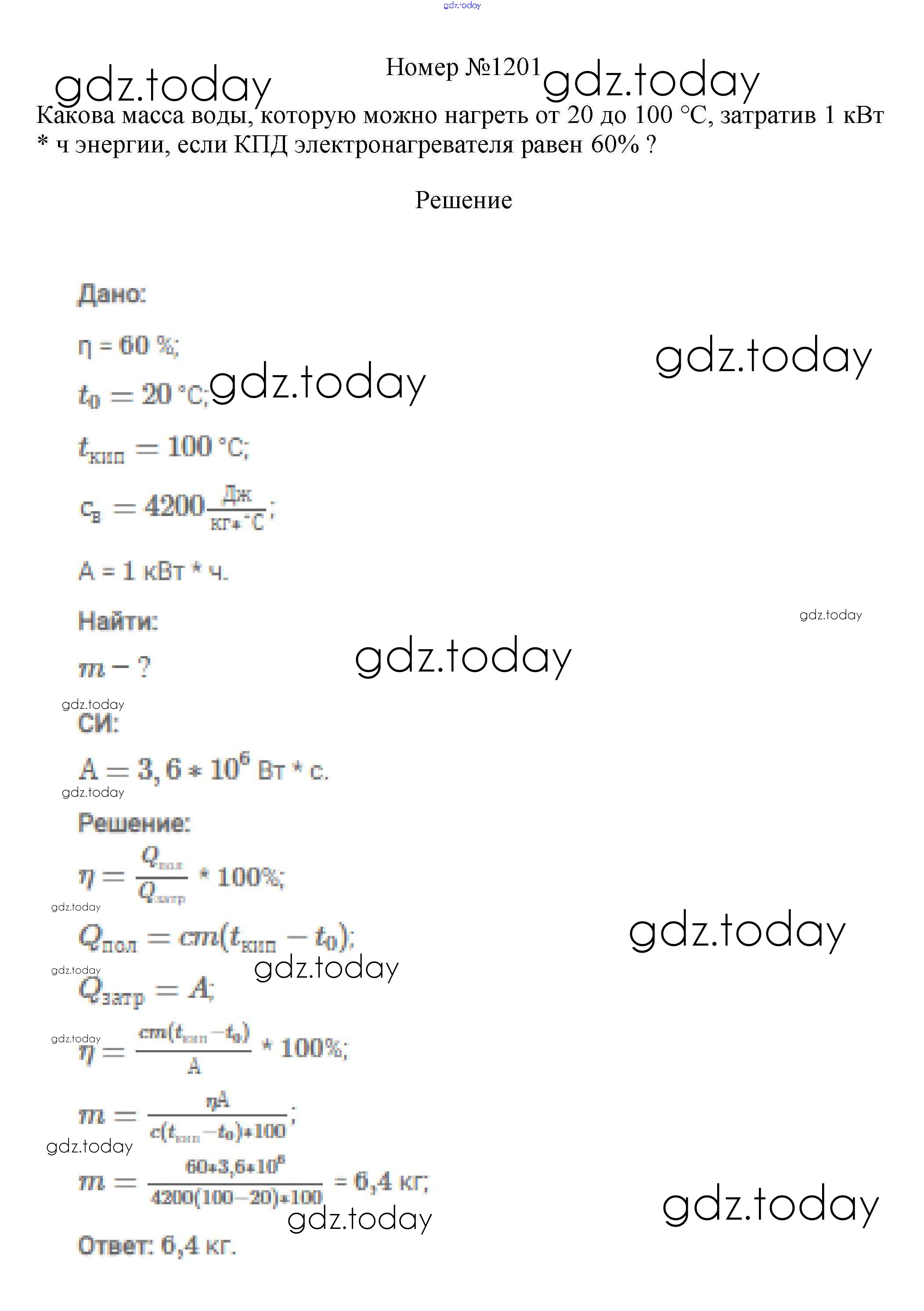 На страницах сайта gdz.today вы найдете учебный и вспомогательный материал, направленный на улучшения знаний школьной программы. ГДЗ - онлайн мир знаний Решение к заданиям 8 класс 1201 Сборнику вопросов и задач по Физике для 7-9 класса Марон, Позойский Дрофа Вертикаль 2013