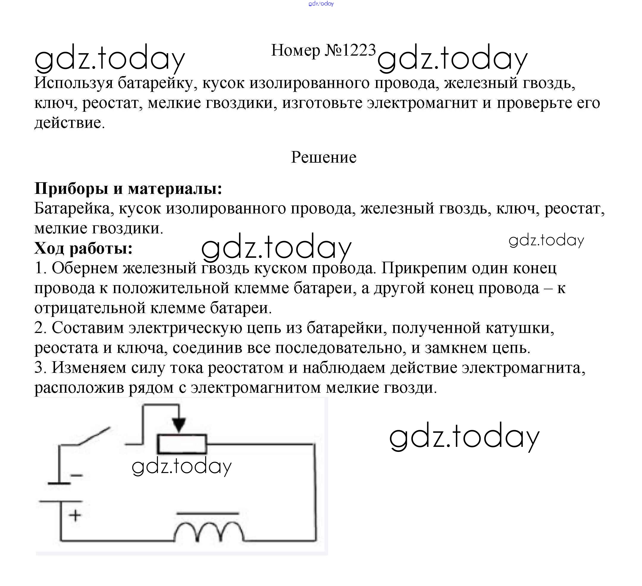 На страницах сайта gdz.today вы найдете учебный и вспомогательный материал, направленный на улучшения знаний школьной программы. ГДЗ - онлайн мир знаний Решение к заданиям 8 класс 1223 Сборнику вопросов и задач по Физике для 7-9 класса Марон, Позойский Дрофа Вертикаль 2013