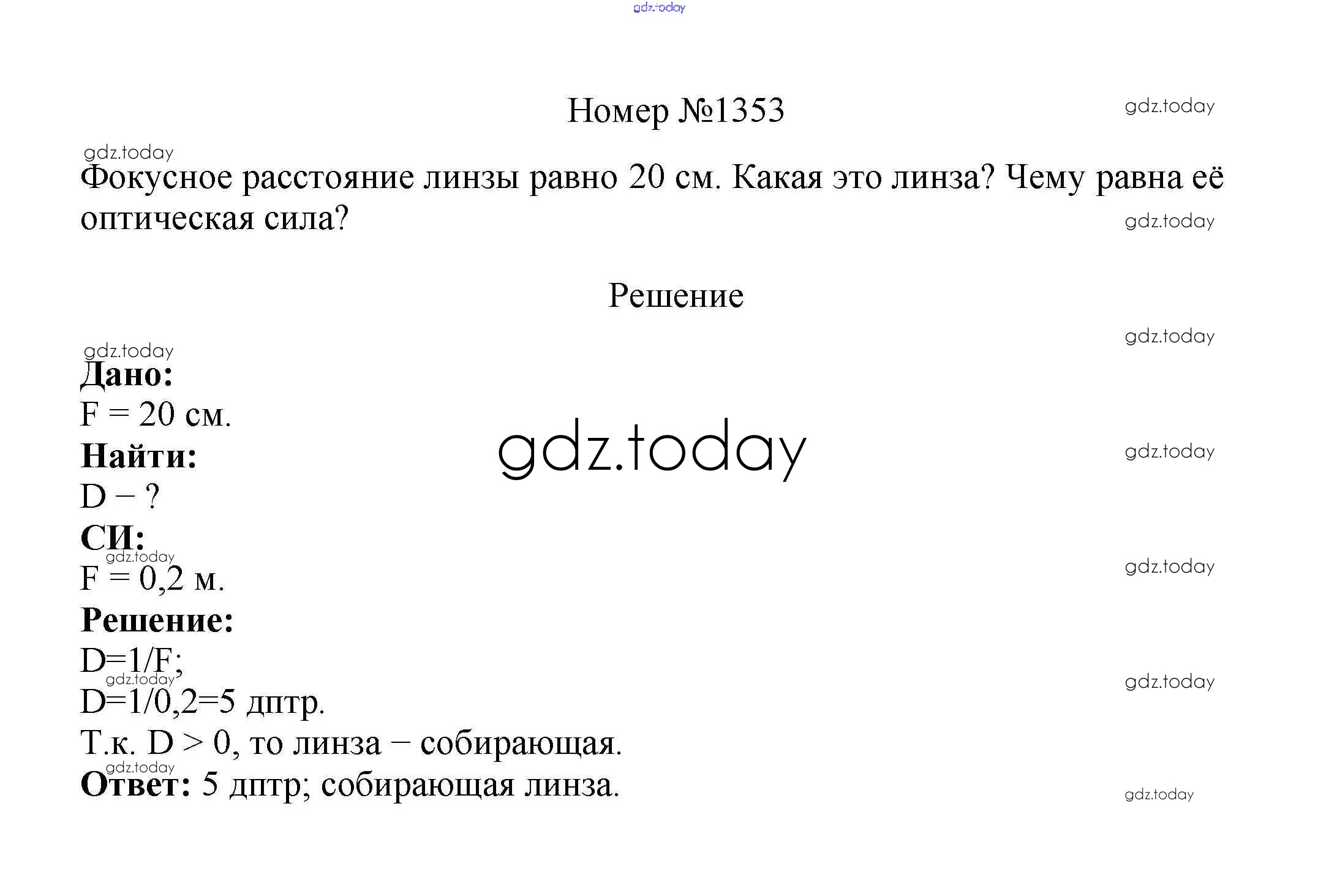 На страницах сайта gdz.today вы найдете учебный и вспомогательный материал, направленный на улучшения знаний школьной программы. ГДЗ - онлайн мир знаний Решение к заданиям 8 класс 1353 Сборнику вопросов и задач по Физике для 7-9 класса Марон, Позойский Дрофа Вертикаль 2013