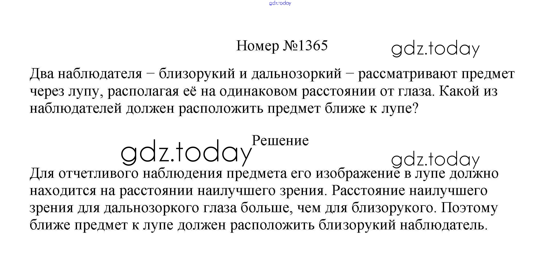 На страницах сайта gdz.today вы найдете учебный и вспомогательный материал, направленный на улучшения знаний школьной программы. ГДЗ - онлайн мир знаний Решение к заданиям 8 класс 1365 Сборнику вопросов и задач по Физике для 7-9 класса Марон, Позойский Дрофа Вертикаль 2013