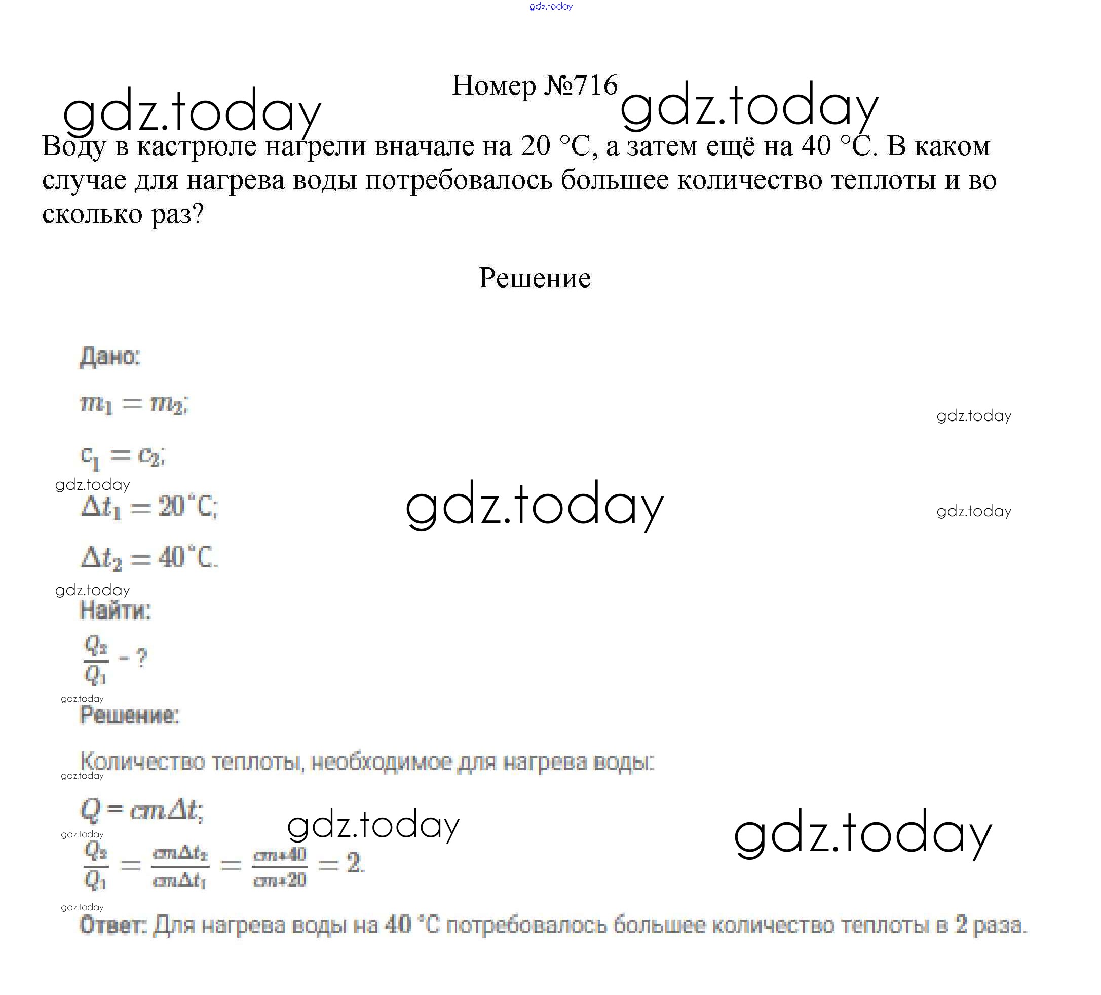 На страницах сайта gdz.today вы найдете учебный и вспомогательный материал, направленный на улучшения знаний школьной программы. ГДЗ - онлайн мир знаний Решение к заданиям 8 класс 716 Сборнику вопросов и задач по Физике для 7-9 класса Марон, Позойский Дрофа Вертикаль 2013