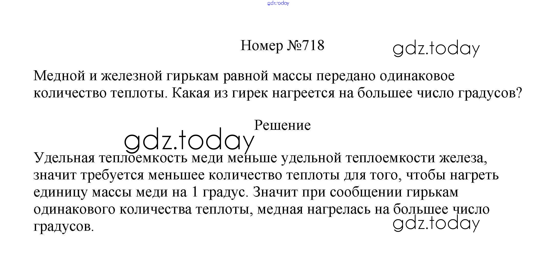 На страницах сайта gdz.today вы найдете учебный и вспомогательный материал, направленный на улучшения знаний школьной программы. ГДЗ - онлайн мир знаний Решение к заданиям 8 класс 718 Сборнику вопросов и задач по Физике для 7-9 класса Марон, Позойский Дрофа Вертикаль 2013