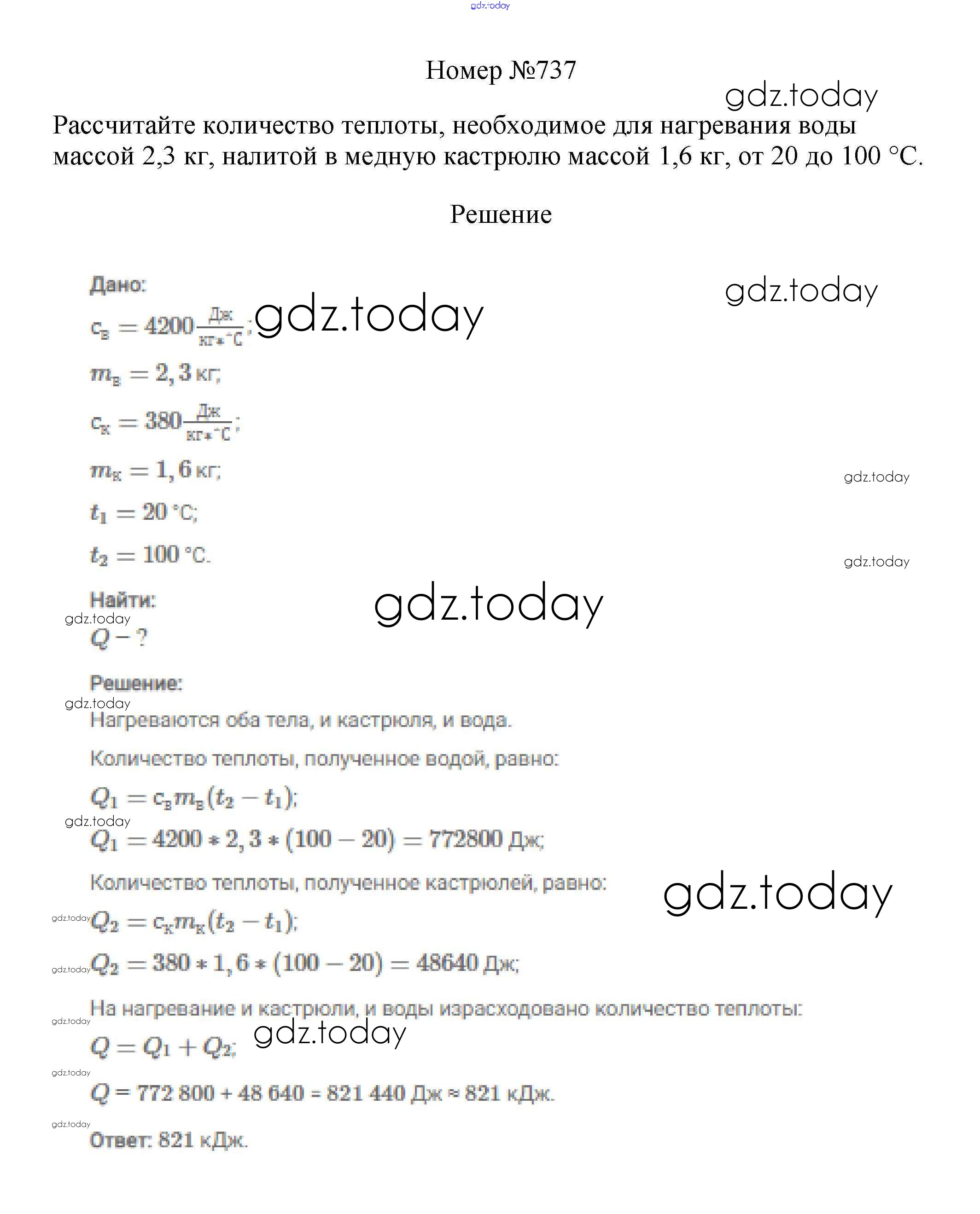 На страницах сайта gdz.today вы найдете учебный и вспомогательный материал, направленный на улучшения знаний школьной программы. ГДЗ - онлайн мир знаний Решение к заданиям 8 класс 737 Сборнику вопросов и задач по Физике для 7-9 класса Марон, Позойский Дрофа Вертикаль 2013