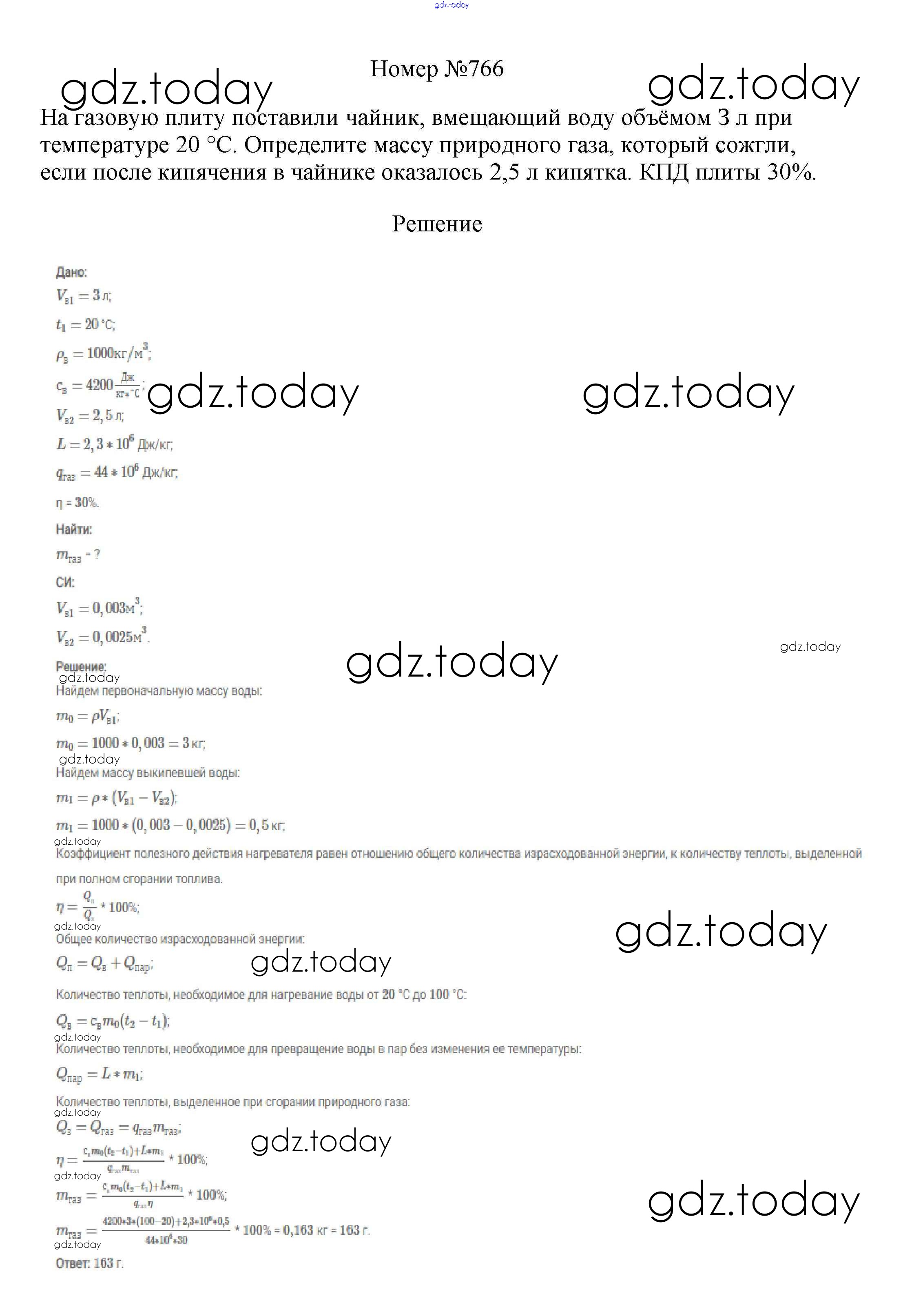 На страницах сайта gdz.today вы найдете учебный и вспомогательный материал, направленный на улучшения знаний школьной программы. ГДЗ - онлайн мир знаний Решение к заданиям 8 класс 766 Сборнику вопросов и задач по Физике для 7-9 класса Марон, Позойский Дрофа Вертикаль 2013