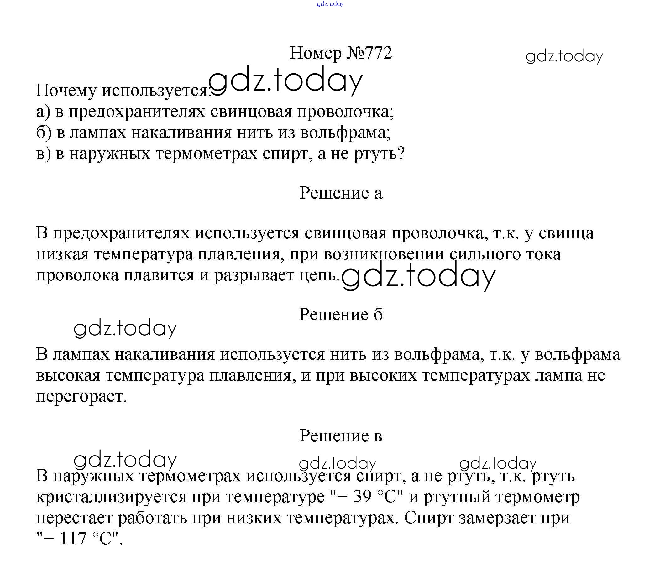 На страницах сайта gdz.today вы найдете учебный и вспомогательный материал, направленный на улучшения знаний школьной программы. ГДЗ - онлайн мир знаний Решение к заданиям 8 класс 772 Сборнику вопросов и задач по Физике для 7-9 класса Марон, Позойский Дрофа Вертикаль 2013