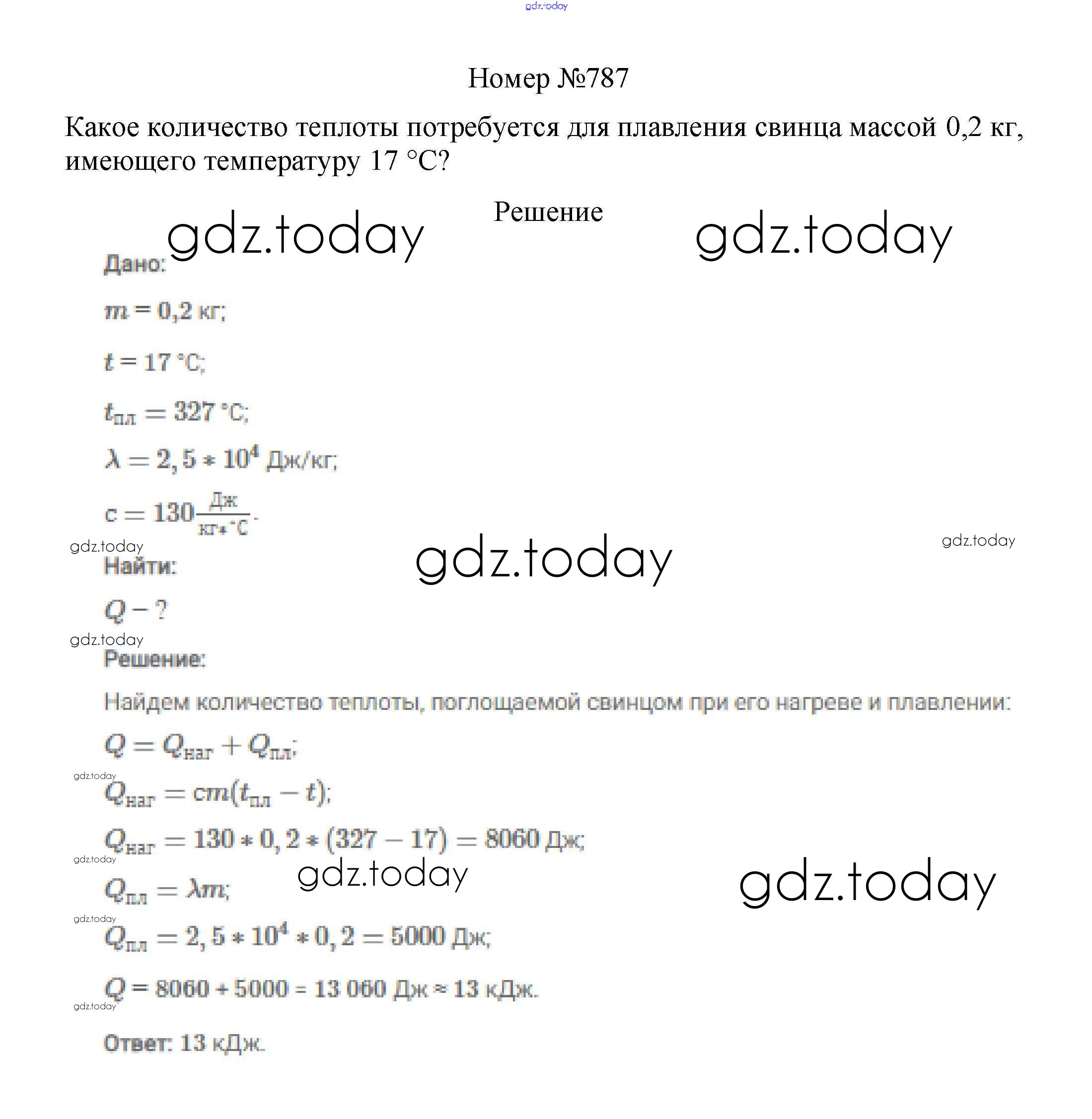 На страницах сайта gdz.today вы найдете учебный и вспомогательный материал, направленный на улучшения знаний школьной программы. ГДЗ - онлайн мир знаний Решение к заданиям 8 класс 787 Сборнику вопросов и задач по Физике для 7-9 класса Марон, Позойский Дрофа Вертикаль 2013
