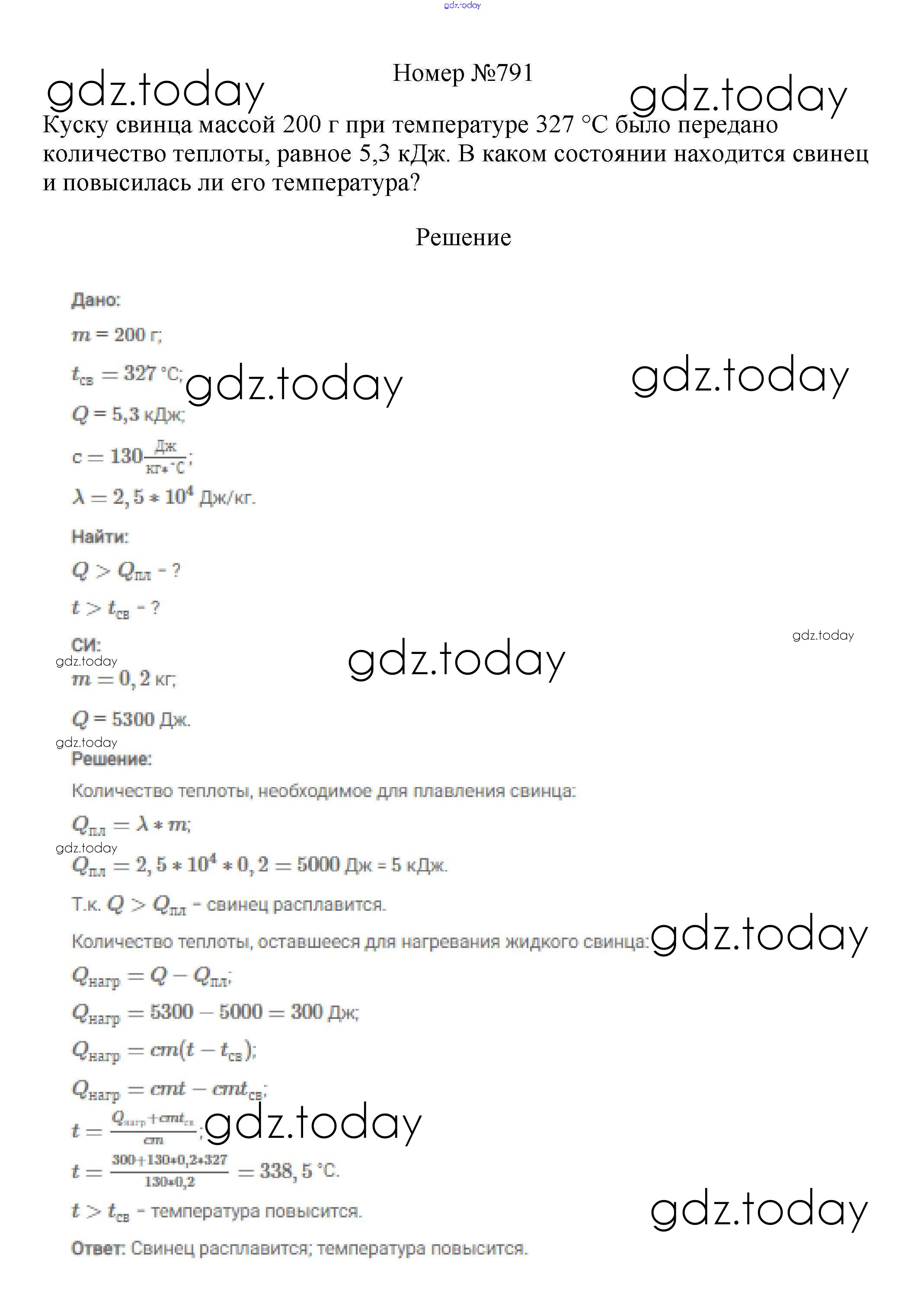 На страницах сайта gdz.today вы найдете учебный и вспомогательный материал, направленный на улучшения знаний школьной программы. ГДЗ - онлайн мир знаний Решение к заданиям 8 класс 791 Сборнику вопросов и задач по Физике для 7-9 класса Марон, Позойский Дрофа Вертикаль 2013