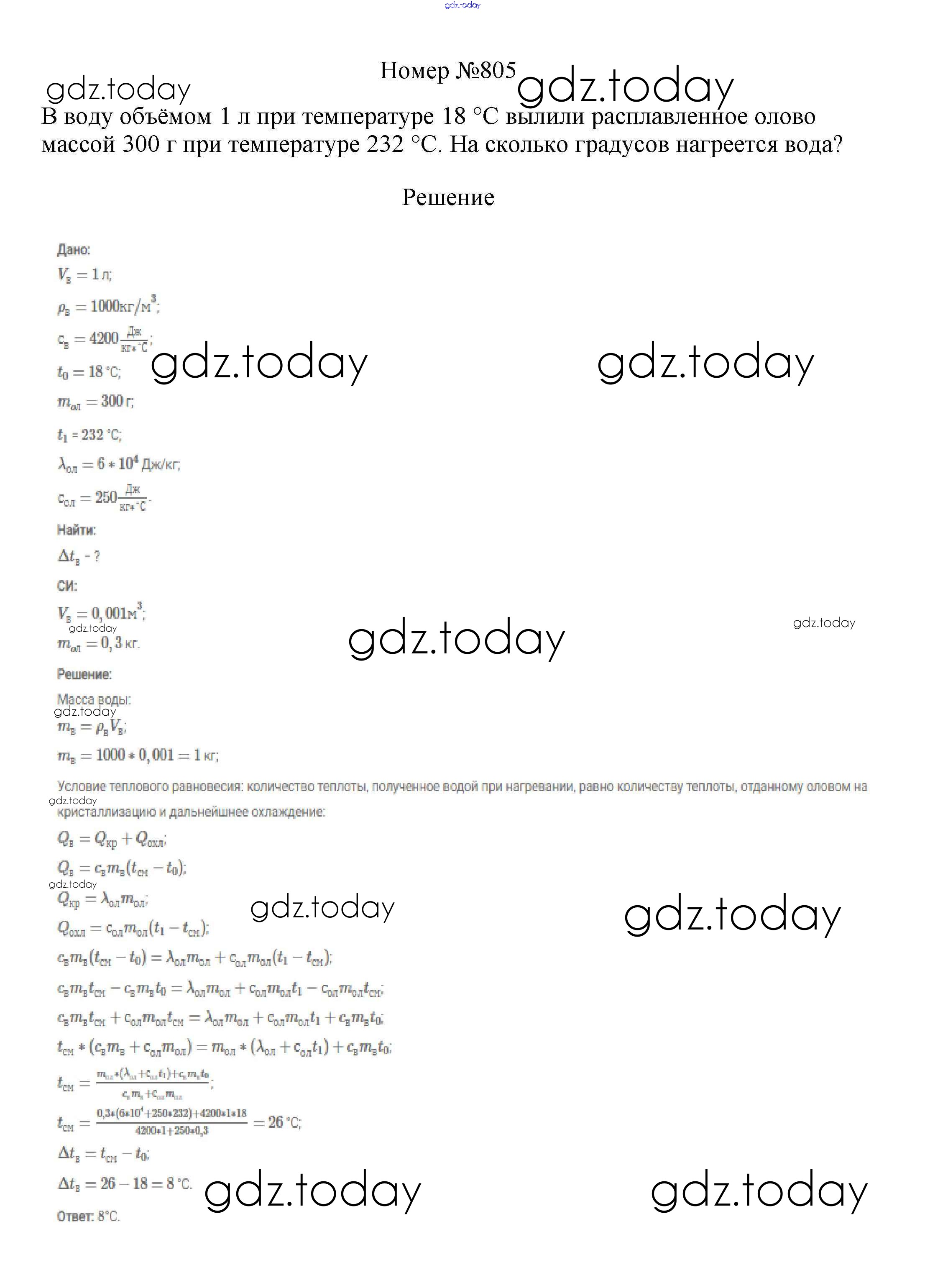 На страницах сайта gdz.today вы найдете учебный и вспомогательный материал, направленный на улучшения знаний школьной программы. ГДЗ - онлайн мир знаний Решение к заданиям 8 класс 805 Сборнику вопросов и задач по Физике для 7-9 класса Марон, Позойский Дрофа Вертикаль 2013