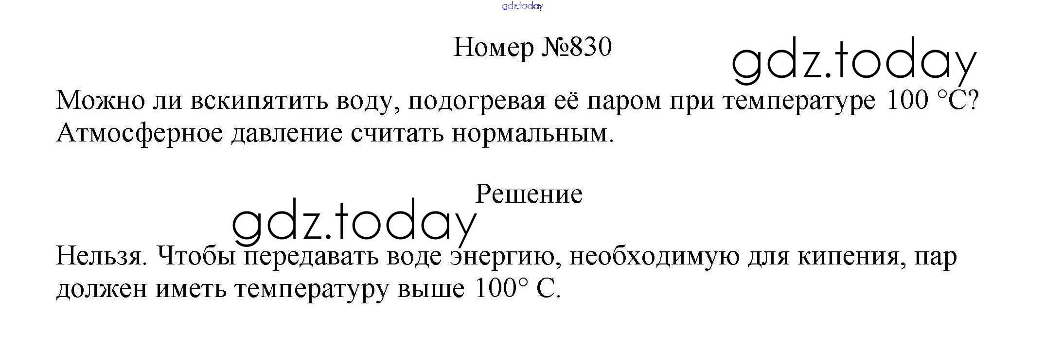 На страницах сайта gdz.today вы найдете учебный и вспомогательный материал, направленный на улучшения знаний школьной программы. ГДЗ - онлайн мир знаний Решение к заданиям 8 класс 830 Сборнику вопросов и задач по Физике для 7-9 класса Марон, Позойский Дрофа Вертикаль 2013