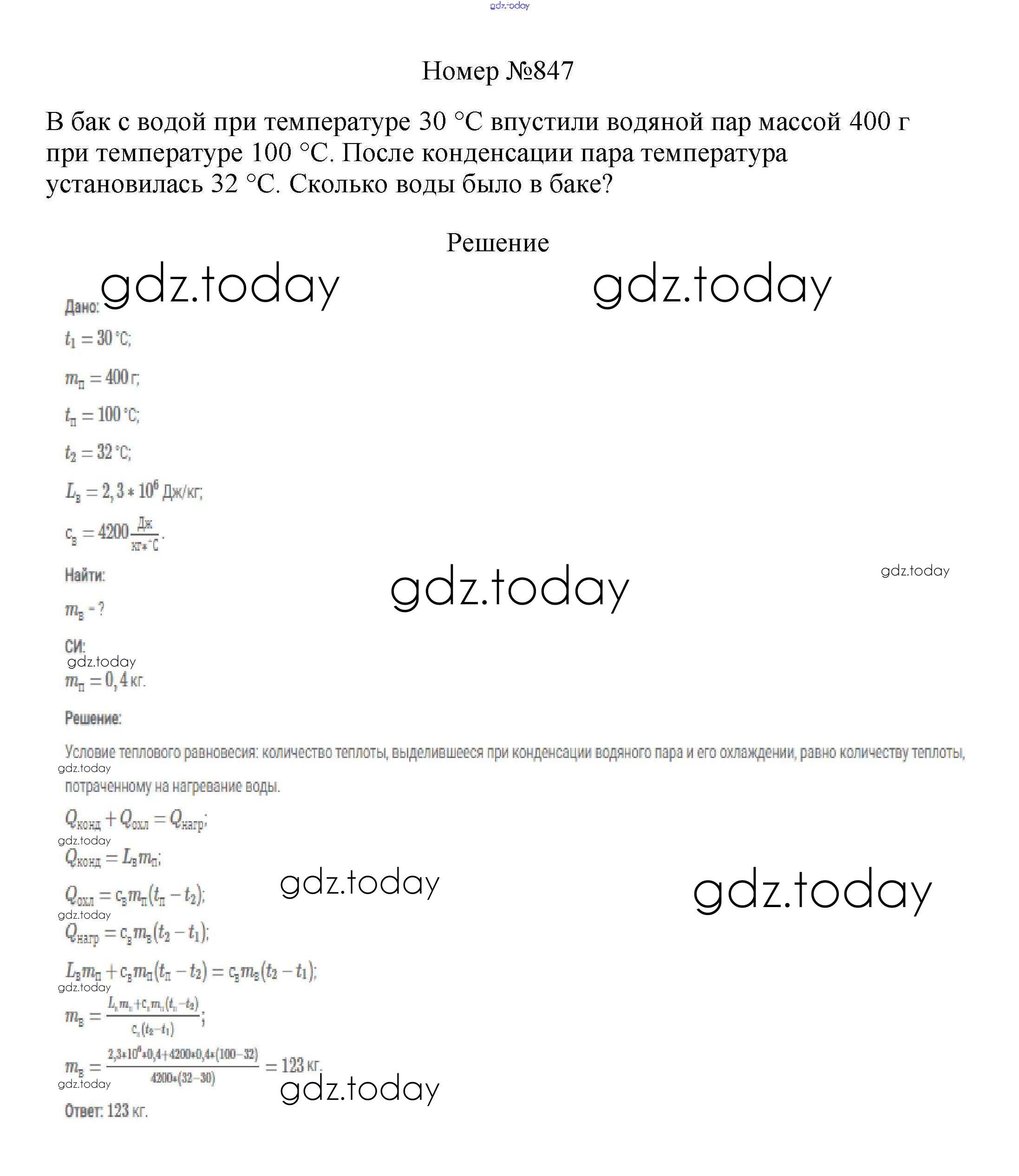 На страницах сайта gdz.today вы найдете учебный и вспомогательный материал, направленный на улучшения знаний школьной программы. ГДЗ - онлайн мир знаний Решение к заданиям 8 класс 847 Сборнику вопросов и задач по Физике для 7-9 класса Марон, Позойский Дрофа Вертикаль 2013