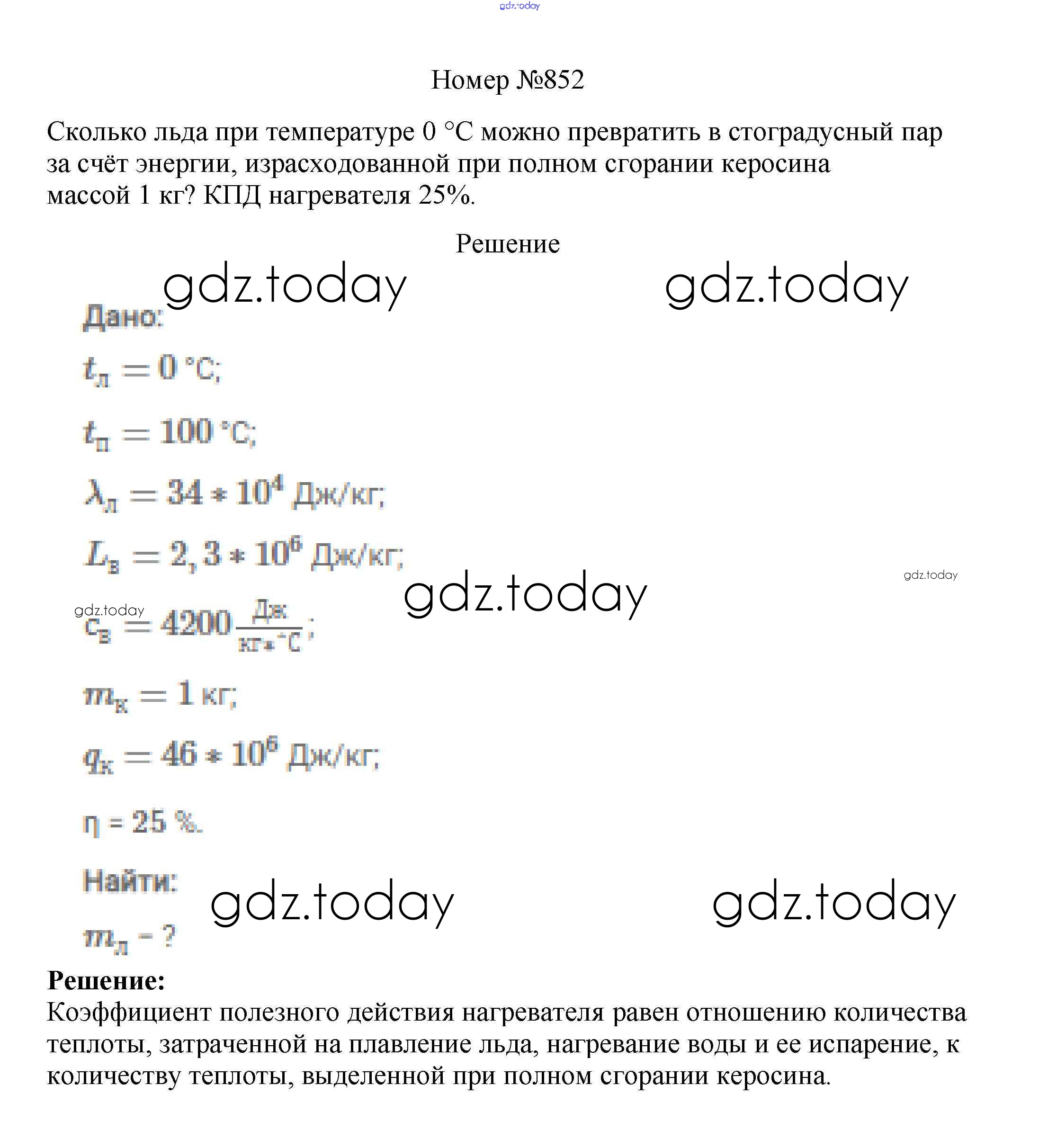 На страницах сайта gdz.today вы найдете учебный и вспомогательный материал, направленный на улучшения знаний школьной программы. ГДЗ - онлайн мир знаний Решение к заданиям 8 класс 852 Сборнику вопросов и задач по Физике для 7-9 класса Марон, Позойский Дрофа Вертикаль 2013