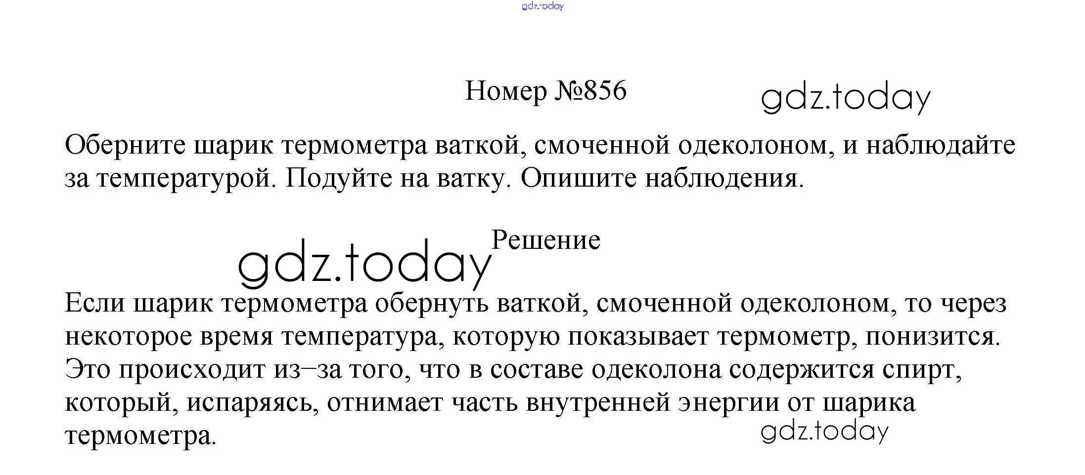 На страницах сайта gdz.today вы найдете учебный и вспомогательный материал, направленный на улучшения знаний школьной программы. ГДЗ - онлайн мир знаний Решение к заданиям 8 класс 856 Сборнику вопросов и задач по Физике для 7-9 класса Марон, Позойский Дрофа Вертикаль 2013