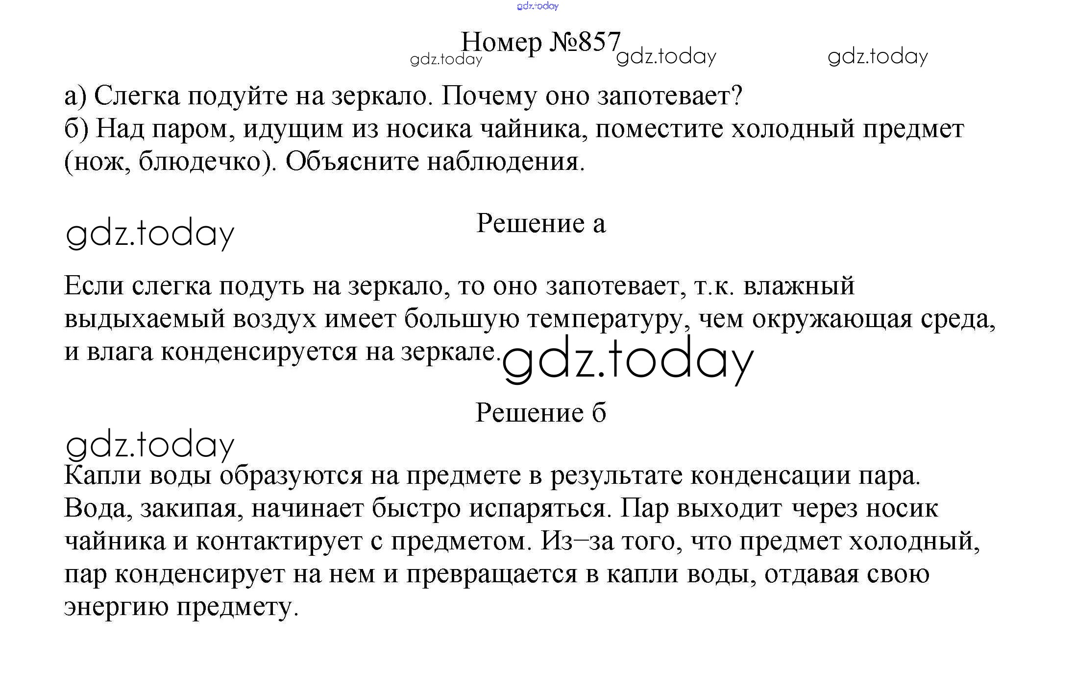 На страницах сайта gdz.today вы найдете учебный и вспомогательный материал, направленный на улучшения знаний школьной программы. ГДЗ - онлайн мир знаний Решение к заданиям 8 класс 857 Сборнику вопросов и задач по Физике для 7-9 класса Марон, Позойский Дрофа Вертикаль 2013