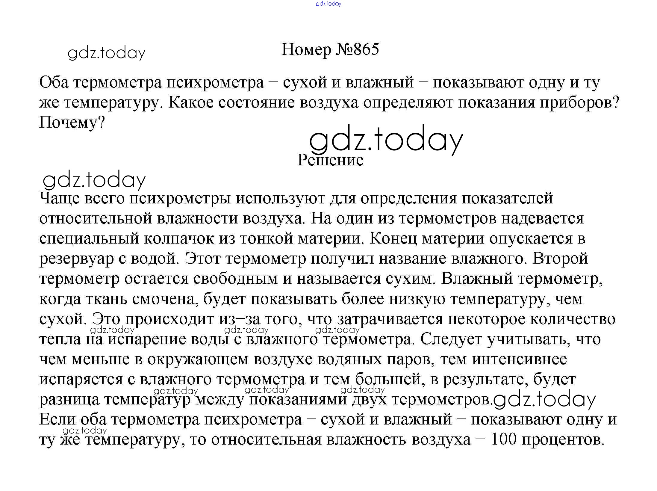 На страницах сайта gdz.today вы найдете учебный и вспомогательный материал, направленный на улучшения знаний школьной программы. ГДЗ - онлайн мир знаний Решение к заданиям 8 класс 865 Сборнику вопросов и задач по Физике для 7-9 класса Марон, Позойский Дрофа Вертикаль 2013