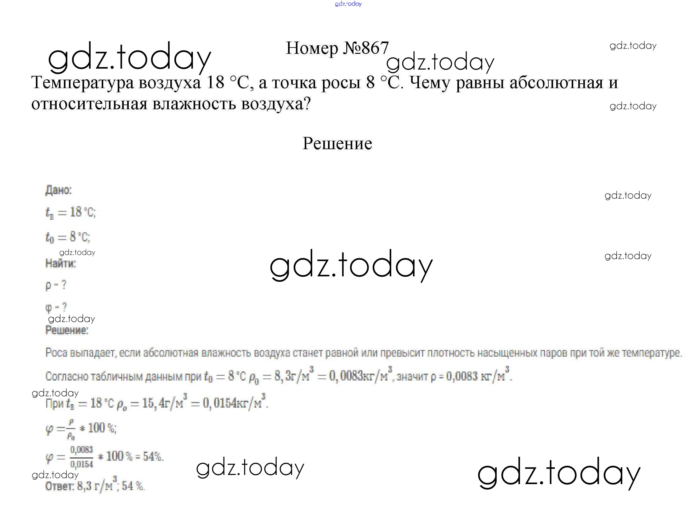 На страницах сайта gdz.today вы найдете учебный и вспомогательный материал, направленный на улучшения знаний школьной программы. ГДЗ - онлайн мир знаний Решение к заданиям 8 класс 867 Сборнику вопросов и задач по Физике для 7-9 класса Марон, Позойский Дрофа Вертикаль 2013