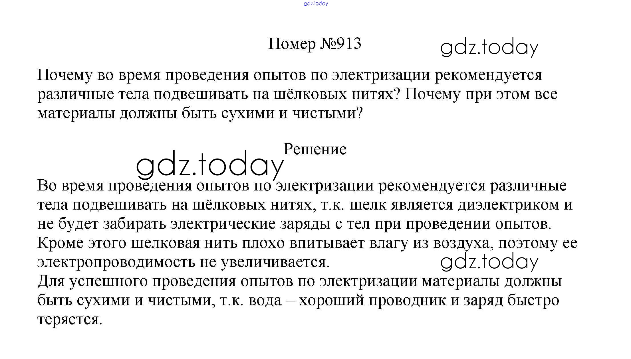 На страницах сайта gdz.today вы найдете учебный и вспомогательный материал, направленный на улучшения знаний школьной программы. ГДЗ - онлайн мир знаний Решение к заданиям 8 класс 913 Сборнику вопросов и задач по Физике для 7-9 класса Марон, Позойский Дрофа Вертикаль 2013