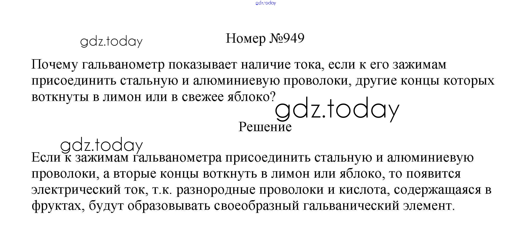 На страницах сайта gdz.today вы найдете учебный и вспомогательный материал, направленный на улучшения знаний школьной программы. ГДЗ - онлайн мир знаний Решение к заданиям 8 класс 949 Сборнику вопросов и задач по Физике для 7-9 класса Марон, Позойский Дрофа Вертикаль 2013