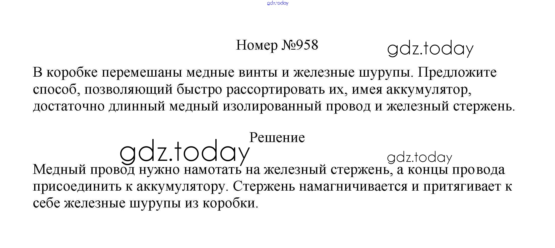 На страницах сайта gdz.today вы найдете учебный и вспомогательный материал, направленный на улучшения знаний школьной программы. ГДЗ - онлайн мир знаний Решение к заданиям 8 класс 958 Сборнику вопросов и задач по Физике для 7-9 класса Марон, Позойский Дрофа Вертикаль 2013