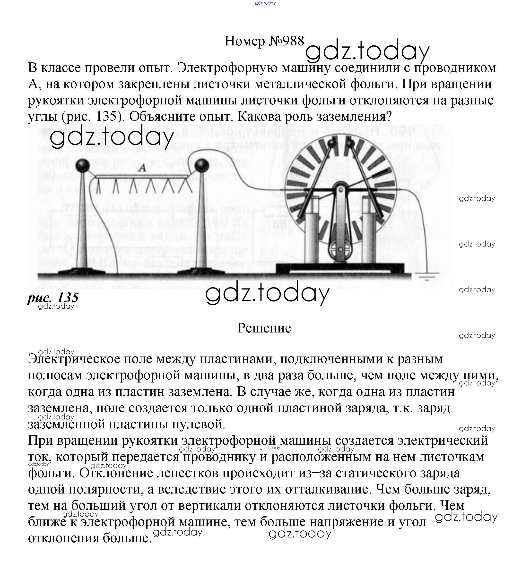 На страницах сайта gdz.today вы найдете учебный и вспомогательный материал, направленный на улучшения знаний школьной программы. ГДЗ - онлайн мир знаний Решение к заданиям 8 класс 988 Сборнику вопросов и задач по Физике для 7-9 класса Марон, Позойский Дрофа Вертикаль 2013