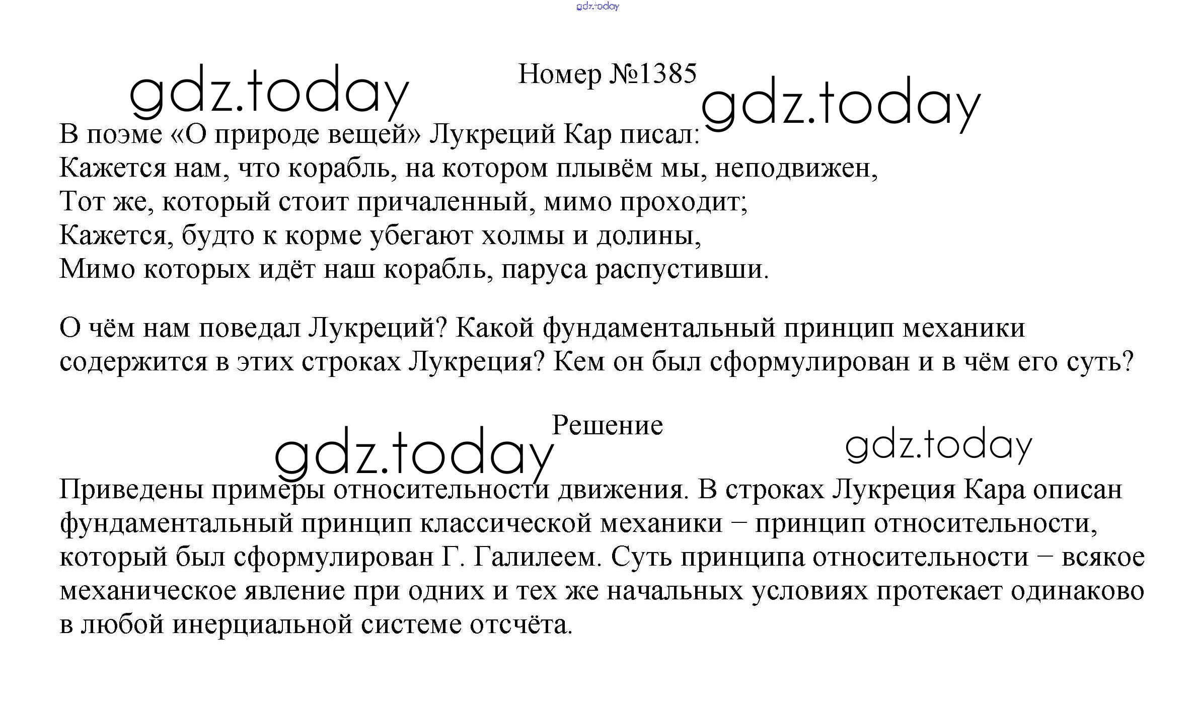 На страницах сайта gdz.today вы найдете учебный и вспомогательный материал, направленный на улучшения знаний школьной программы. ГДЗ - онлайн мир знаний Решение к заданиям 9 класс 1385 Сборнику вопросов и задач по Физике для 7-9 класса Марон, Позойский Дрофа Вертикаль 2013