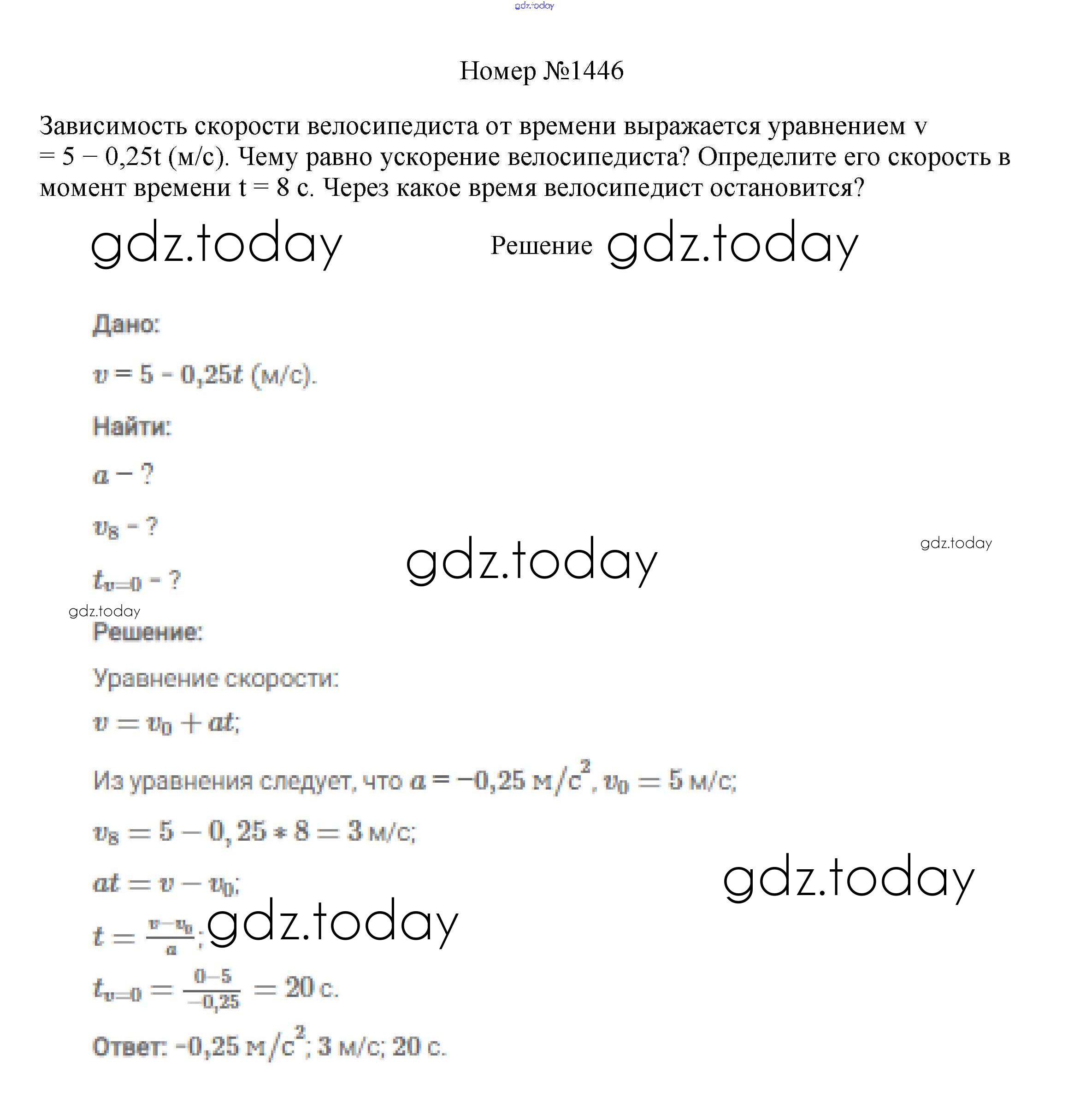 На страницах сайта gdz.today вы найдете учебный и вспомогательный материал, направленный на улучшения знаний школьной программы. ГДЗ - онлайн мир знаний Решение к заданиям 9 класс 1446 Сборнику вопросов и задач по Физике для 7-9 класса Марон, Позойский Дрофа Вертикаль 2013