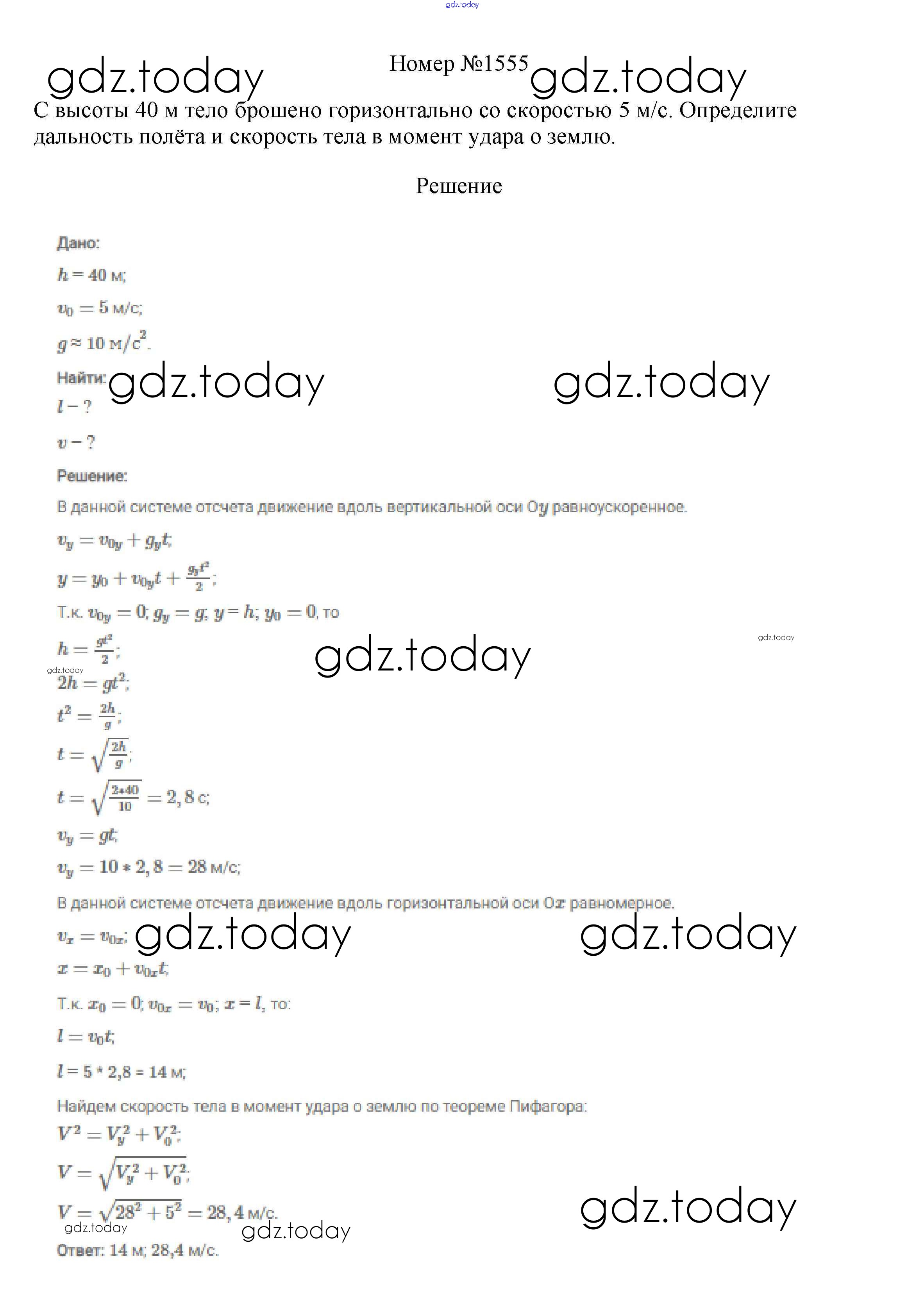 На страницах сайта gdz.today вы найдете учебный и вспомогательный материал, направленный на улучшения знаний школьной программы. ГДЗ - онлайн мир знаний Решение к заданиям 9 класс 1555 Сборнику вопросов и задач по Физике для 7-9 класса Марон, Позойский Дрофа Вертикаль 2013