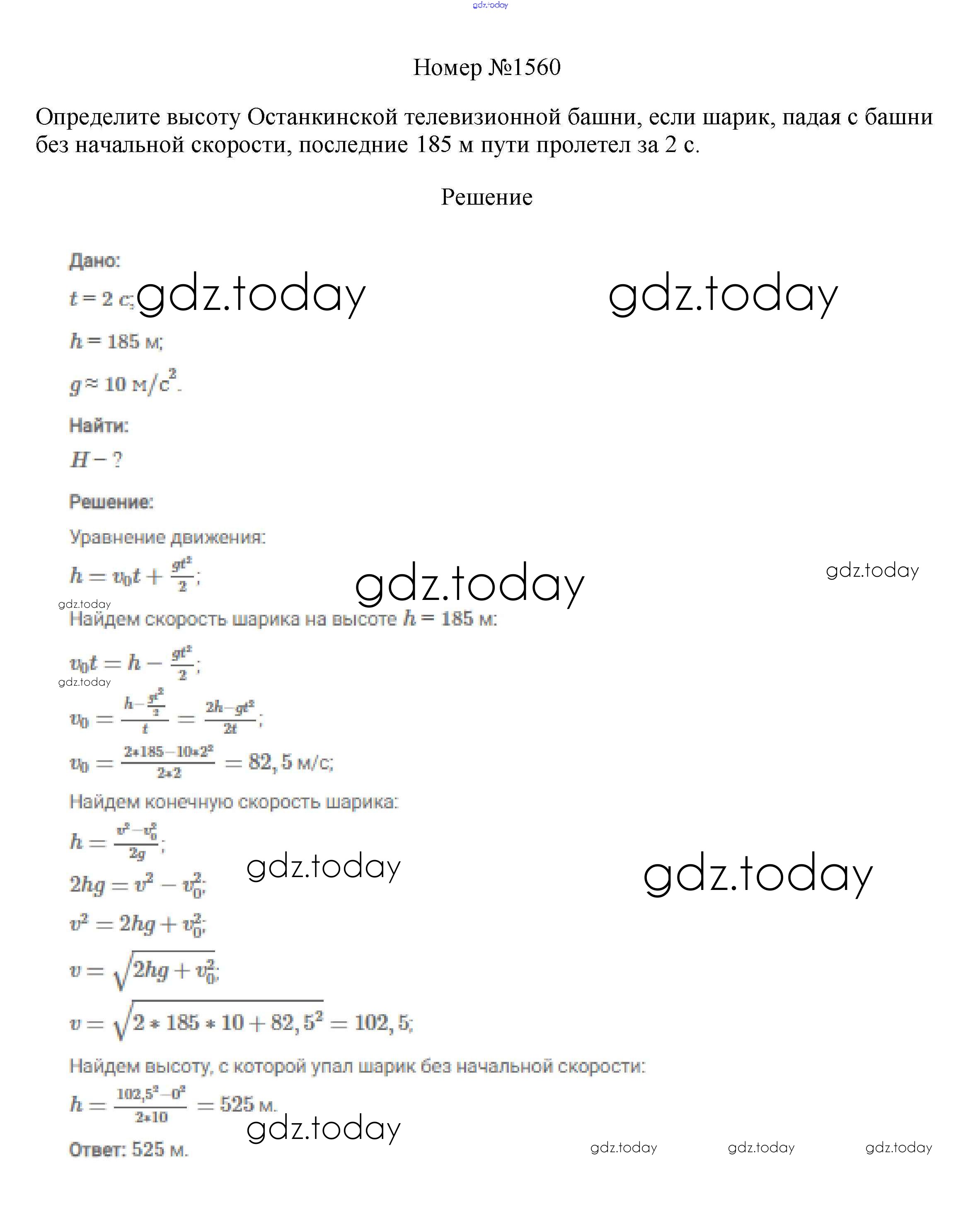 На страницах сайта gdz.today вы найдете учебный и вспомогательный материал, направленный на улучшения знаний школьной программы. ГДЗ - онлайн мир знаний Решение к заданиям 9 класс 1560 Сборнику вопросов и задач по Физике для 7-9 класса Марон, Позойский Дрофа Вертикаль 2013