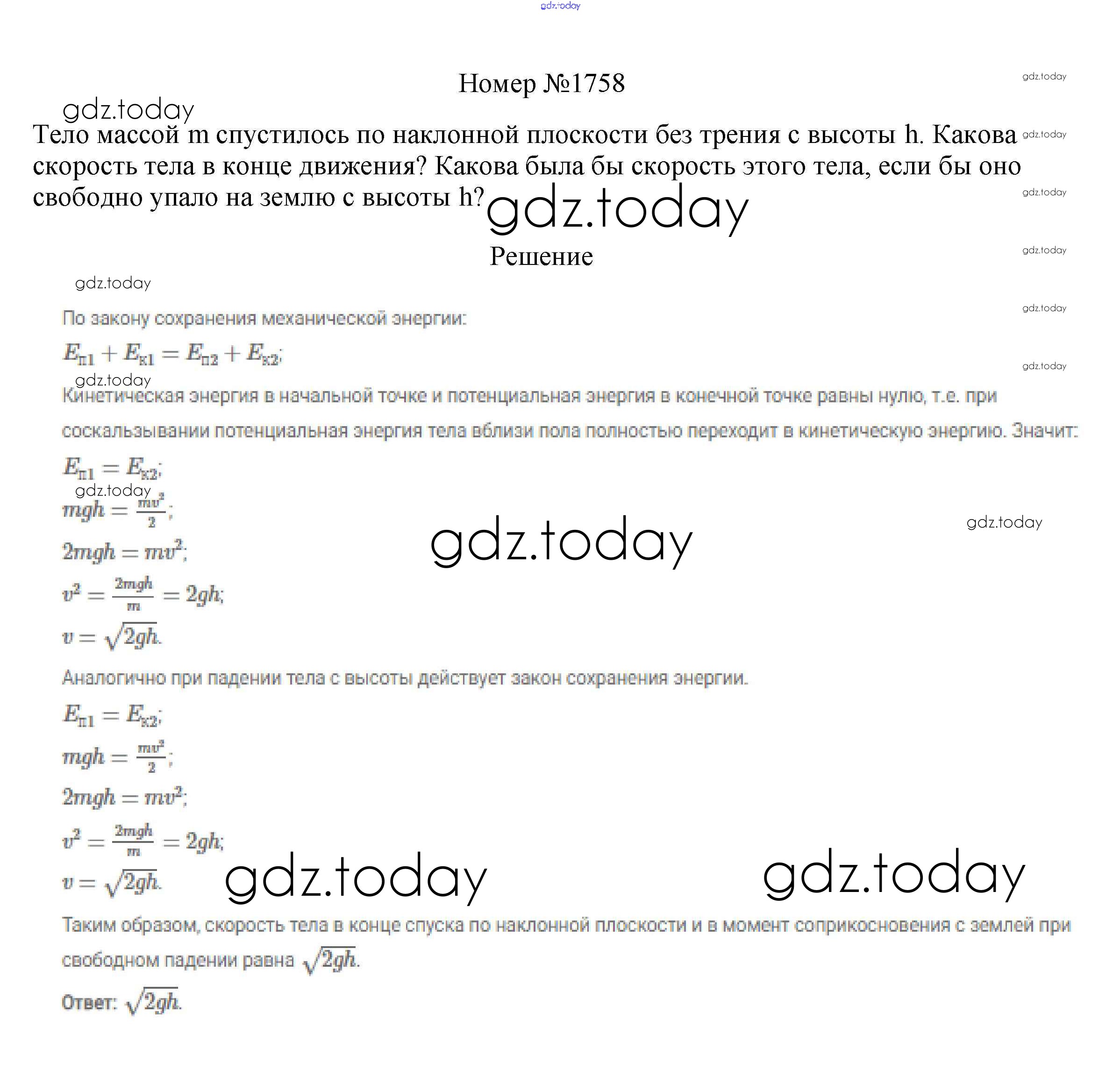 На страницах сайта gdz.today вы найдете учебный и вспомогательный материал, направленный на улучшения знаний школьной программы. ГДЗ - онлайн мир знаний Решение к заданиям 9 класс 1758 Сборнику вопросов и задач по Физике для 7-9 класса Марон, Позойский Дрофа Вертикаль 2013