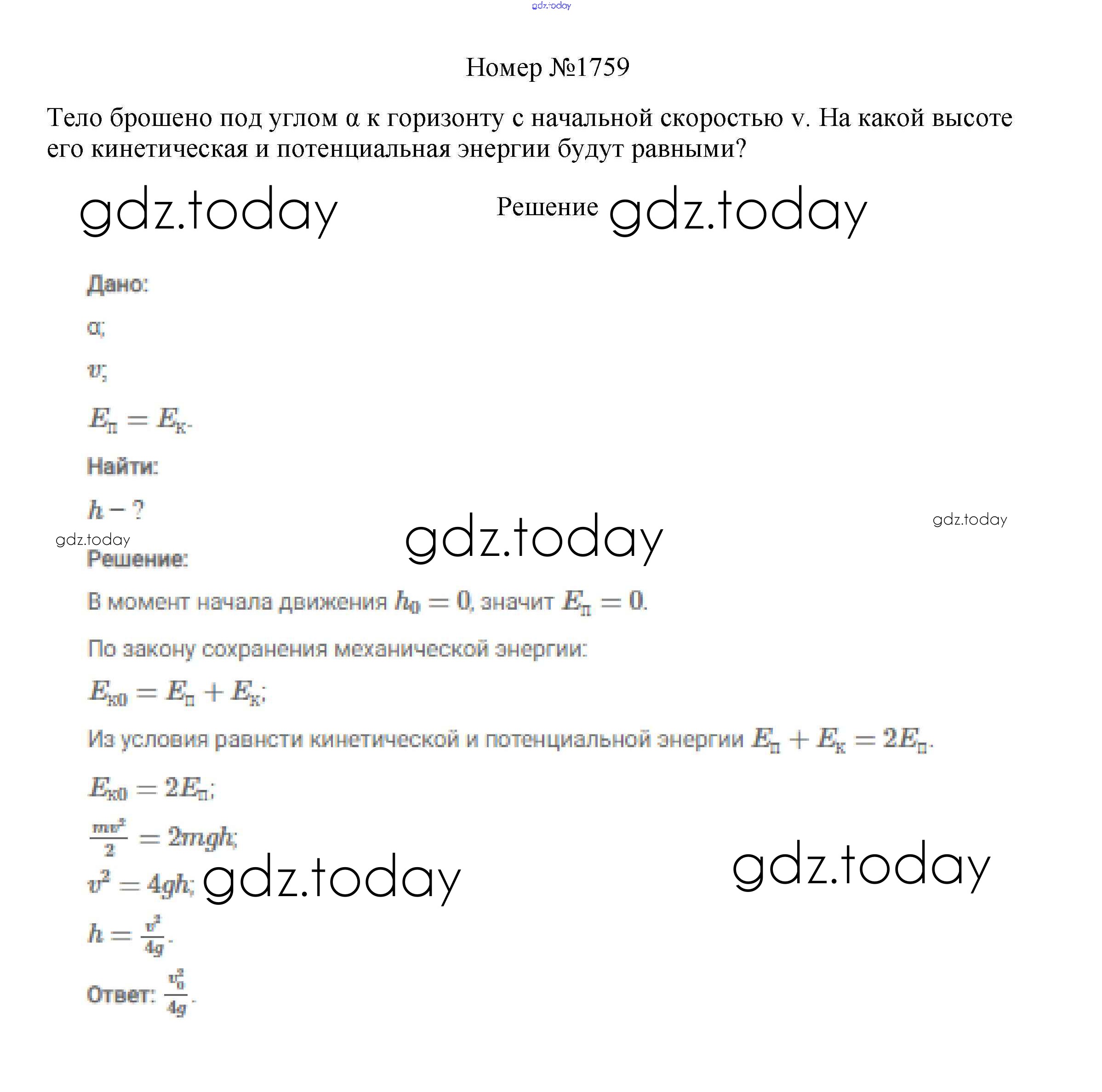 На страницах сайта gdz.today вы найдете учебный и вспомогательный материал, направленный на улучшения знаний школьной программы. ГДЗ - онлайн мир знаний Решение к заданиям 9 класс 1759 Сборнику вопросов и задач по Физике для 7-9 класса Марон, Позойский Дрофа Вертикаль 2013