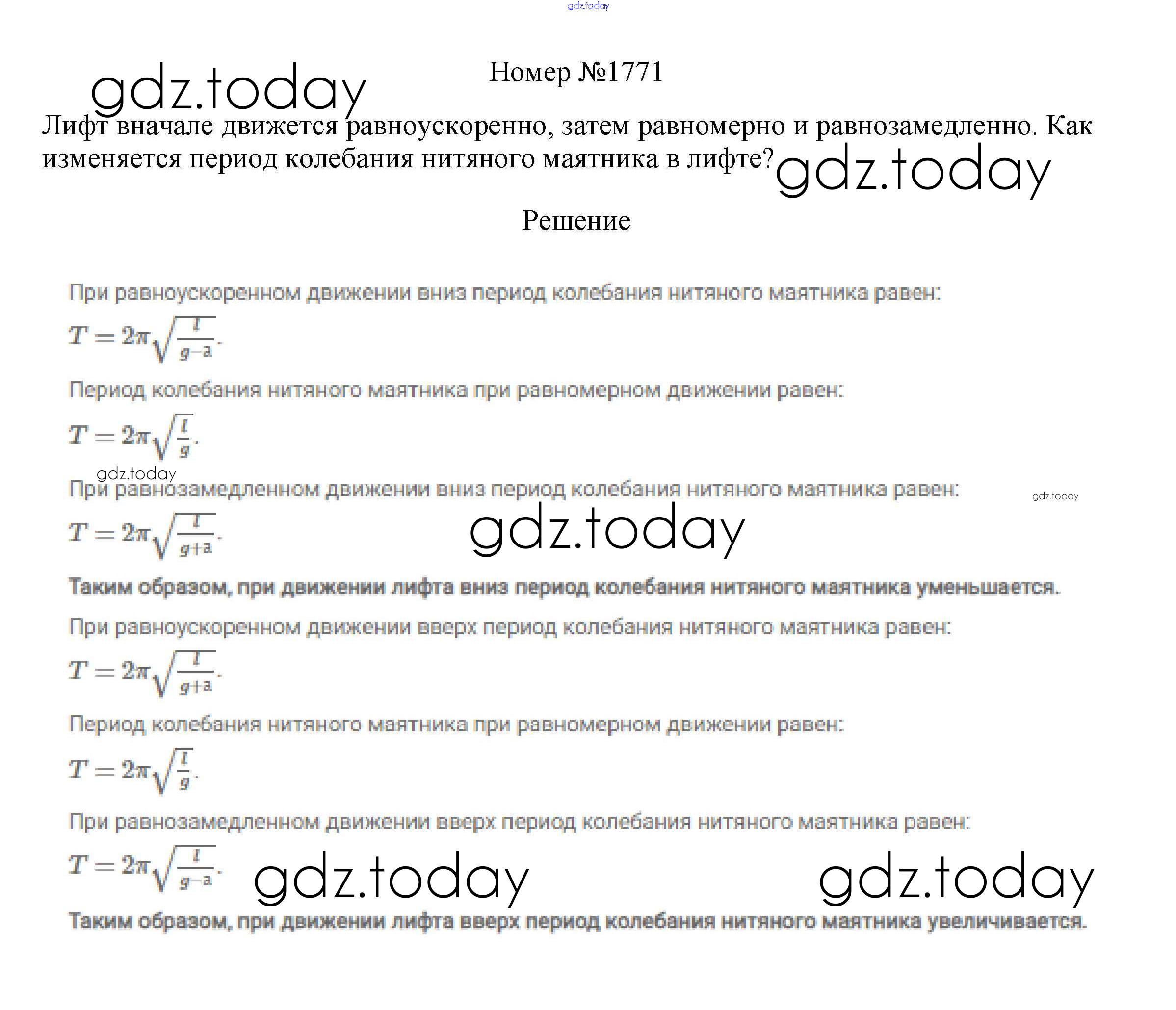 На страницах сайта gdz.today вы найдете учебный и вспомогательный материал, направленный на улучшения знаний школьной программы. ГДЗ - онлайн мир знаний Решение к заданиям 9 класс 1771 Сборнику вопросов и задач по Физике для 7-9 класса Марон, Позойский Дрофа Вертикаль 2013