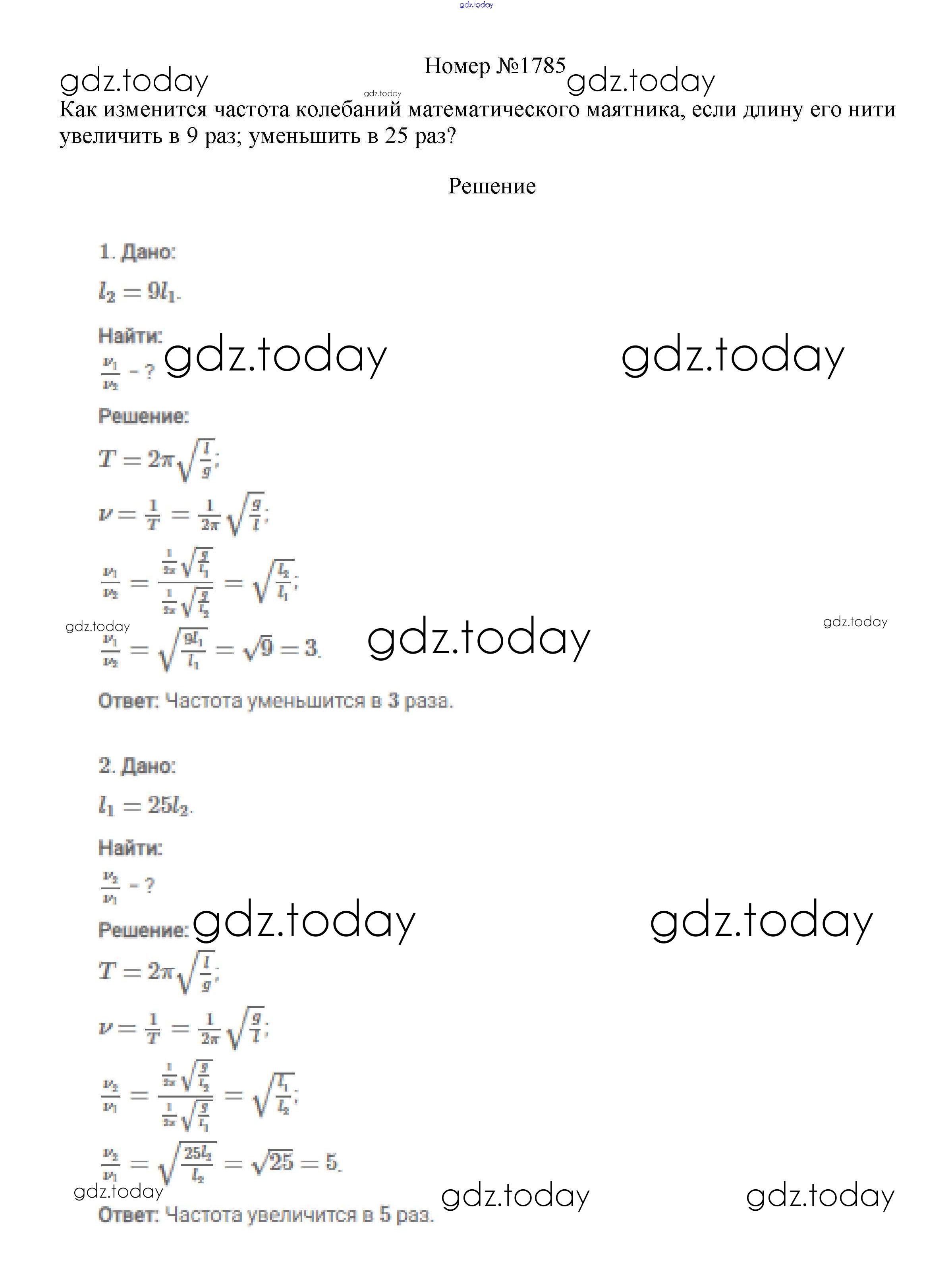 На страницах сайта gdz.today вы найдете учебный и вспомогательный материал, направленный на улучшения знаний школьной программы. ГДЗ - онлайн мир знаний Решение к заданиям 9 класс 1785 Сборнику вопросов и задач по Физике для 7-9 класса Марон, Позойский Дрофа Вертикаль 2013