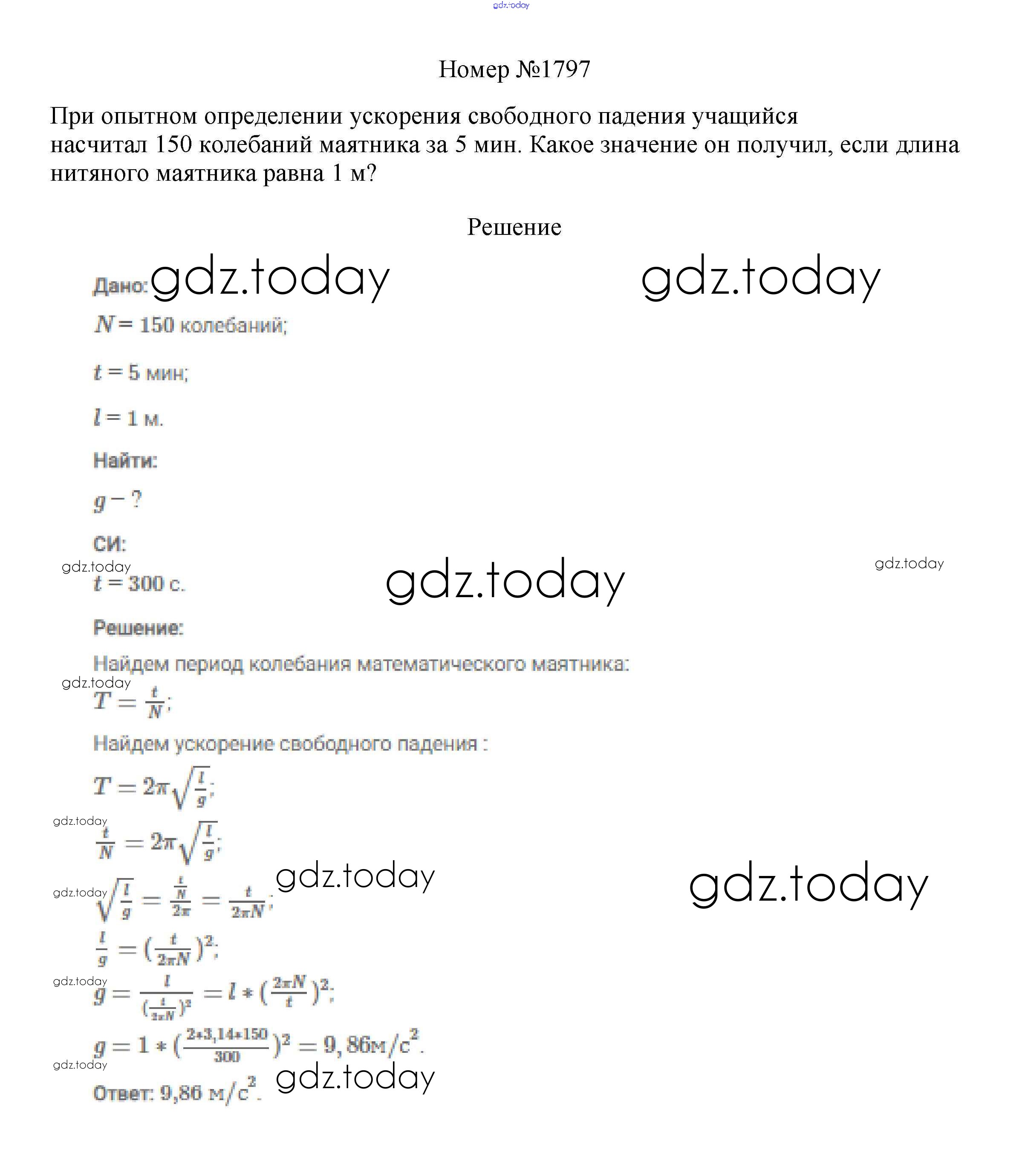 На страницах сайта gdz.today вы найдете учебный и вспомогательный материал, направленный на улучшения знаний школьной программы. ГДЗ - онлайн мир знаний Решение к заданиям 9 класс 1797 Сборнику вопросов и задач по Физике для 7-9 класса Марон, Позойский Дрофа Вертикаль 2013
