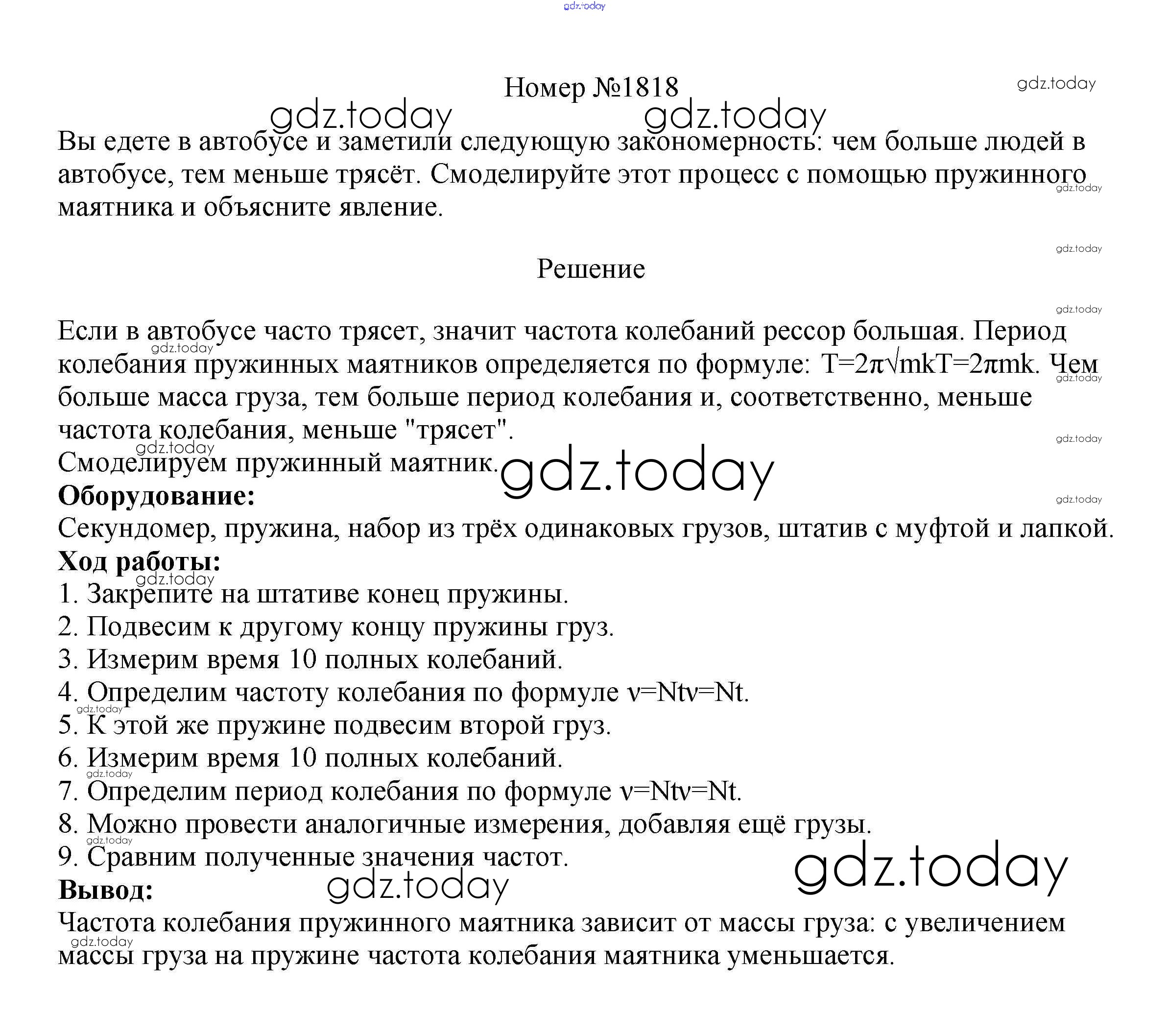 На страницах сайта gdz.today вы найдете учебный и вспомогательный материал, направленный на улучшения знаний школьной программы. ГДЗ - онлайн мир знаний Решение к заданиям 9 класс 1818 Сборнику вопросов и задач по Физике для 7-9 класса Марон, Позойский Дрофа Вертикаль 2013