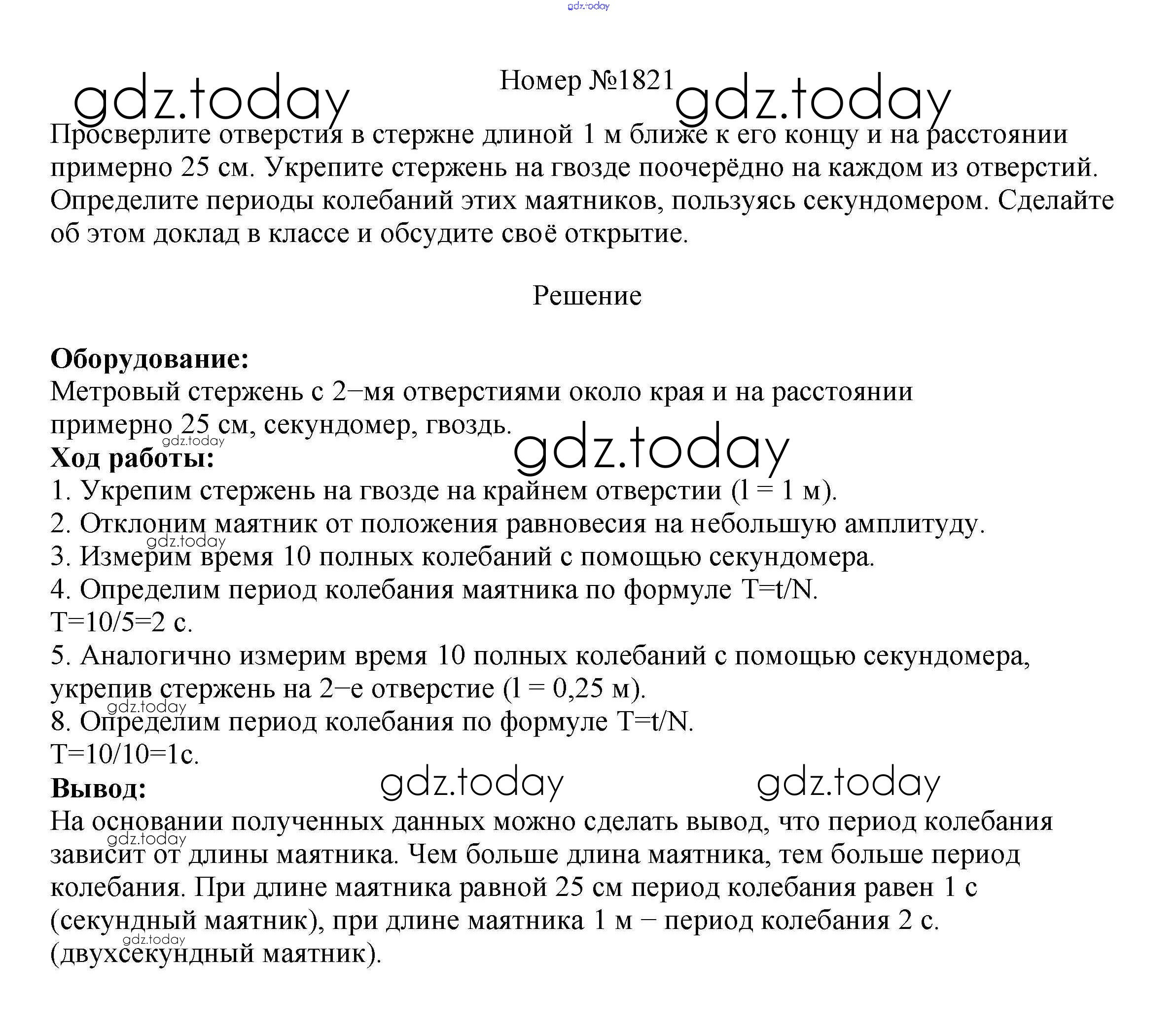 На страницах сайта gdz.today вы найдете учебный и вспомогательный материал, направленный на улучшения знаний школьной программы. ГДЗ - онлайн мир знаний Решение к заданиям 9 класс 1821 Сборнику вопросов и задач по Физике для 7-9 класса Марон, Позойский Дрофа Вертикаль 2013