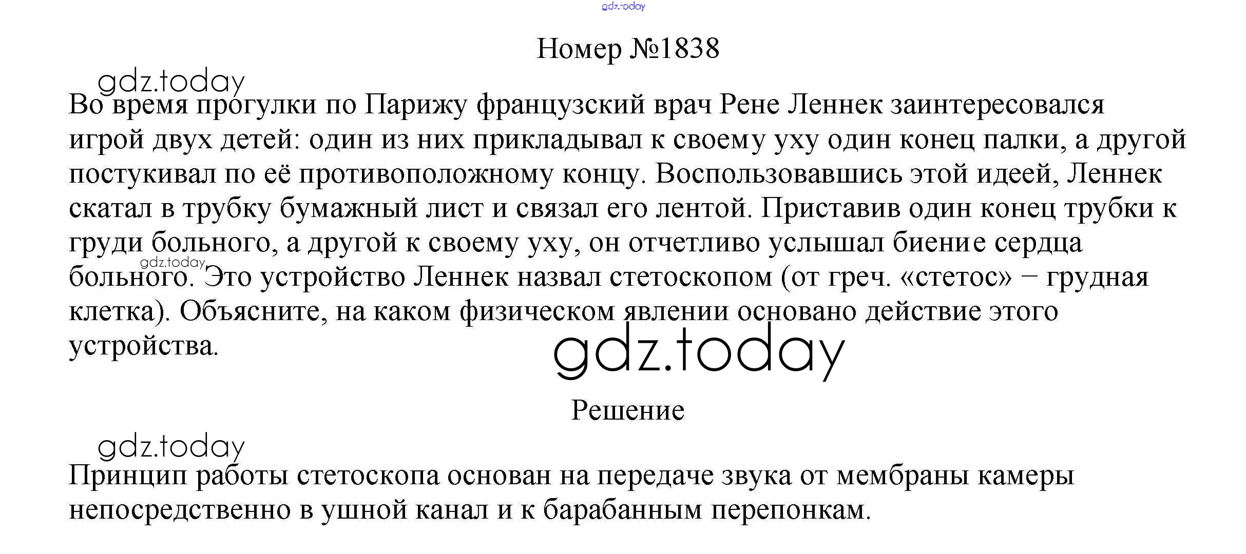 На страницах сайта gdz.today вы найдете учебный и вспомогательный материал, направленный на улучшения знаний школьной программы. ГДЗ - онлайн мир знаний Решение к заданиям 9 класс 1838 Сборнику вопросов и задач по Физике для 7-9 класса Марон, Позойский Дрофа Вертикаль 2013